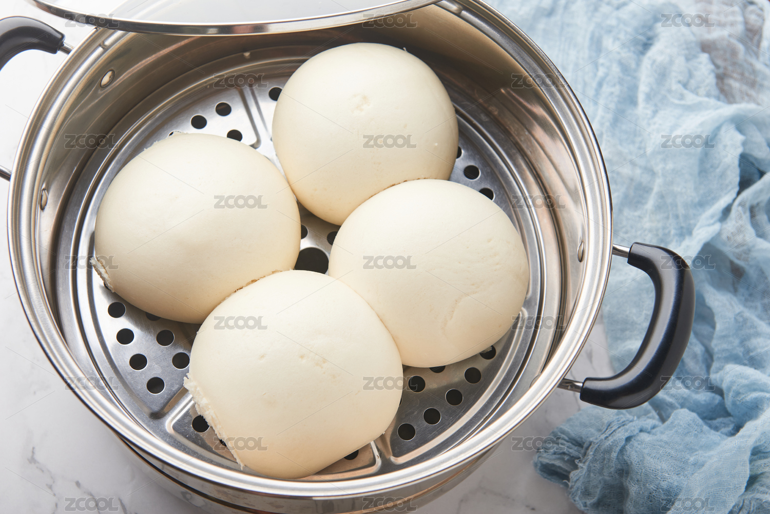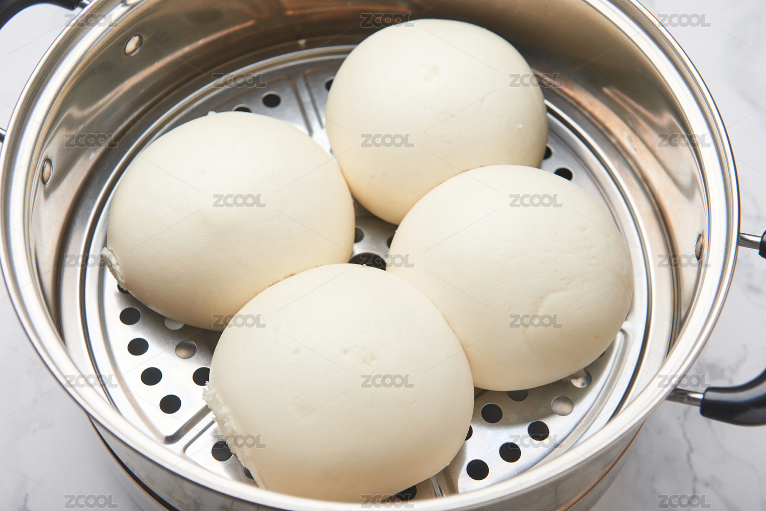 摆放在蒸屉锅中刚刚蒸熟的馒头