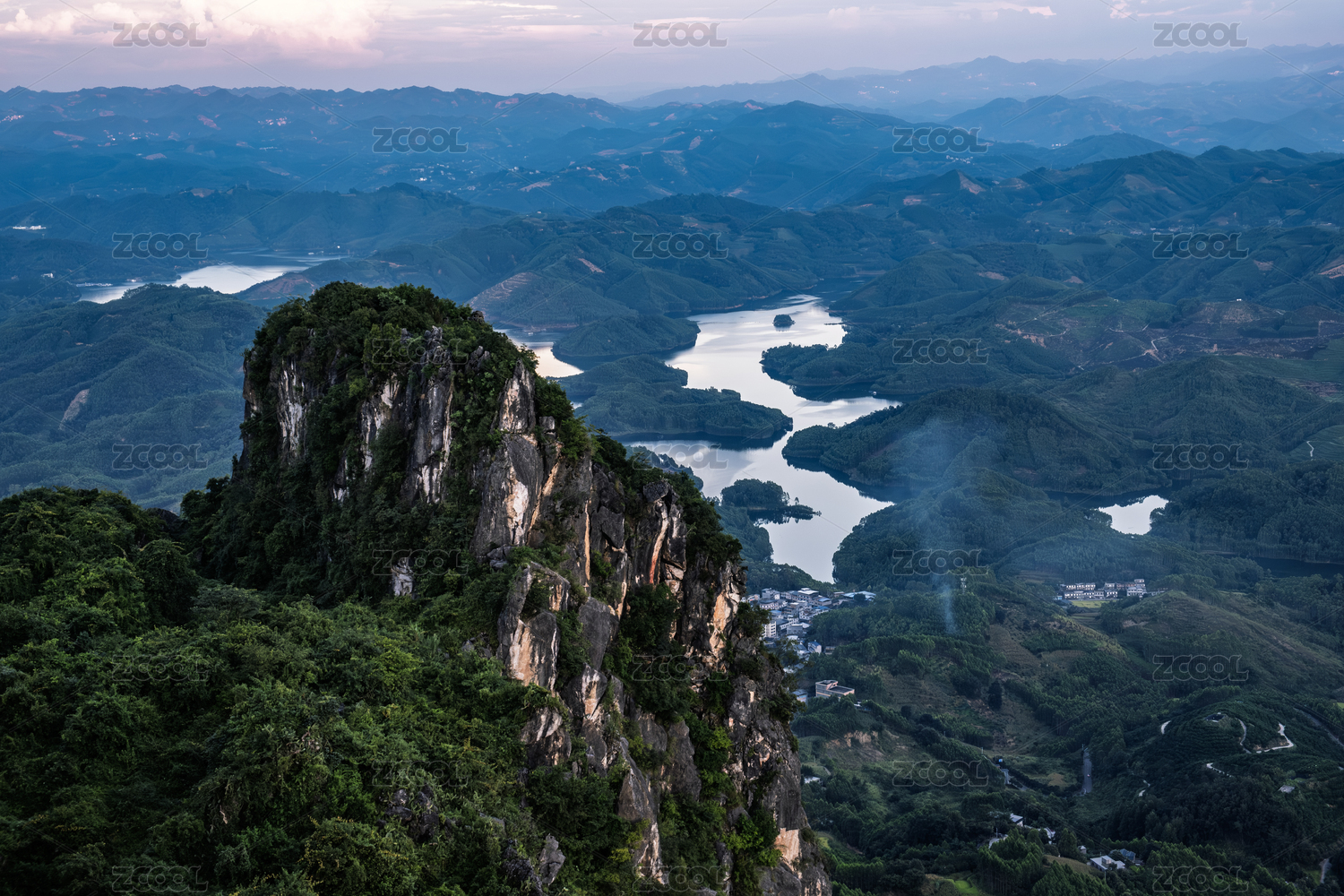 雾汽弥漫的四川省绵阳市涪江六峡峡湾风光
