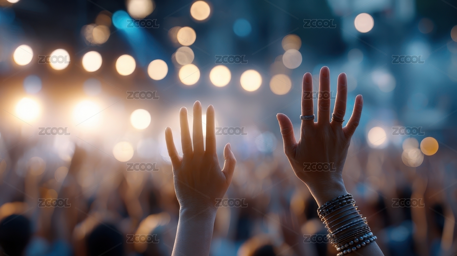 夜晚舞台上绚丽明亮的灯光,和台下大片观众