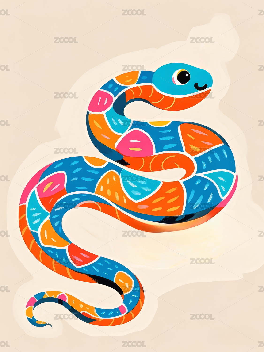 可爱儿童插画风格生肖蛇儿童涂鸦