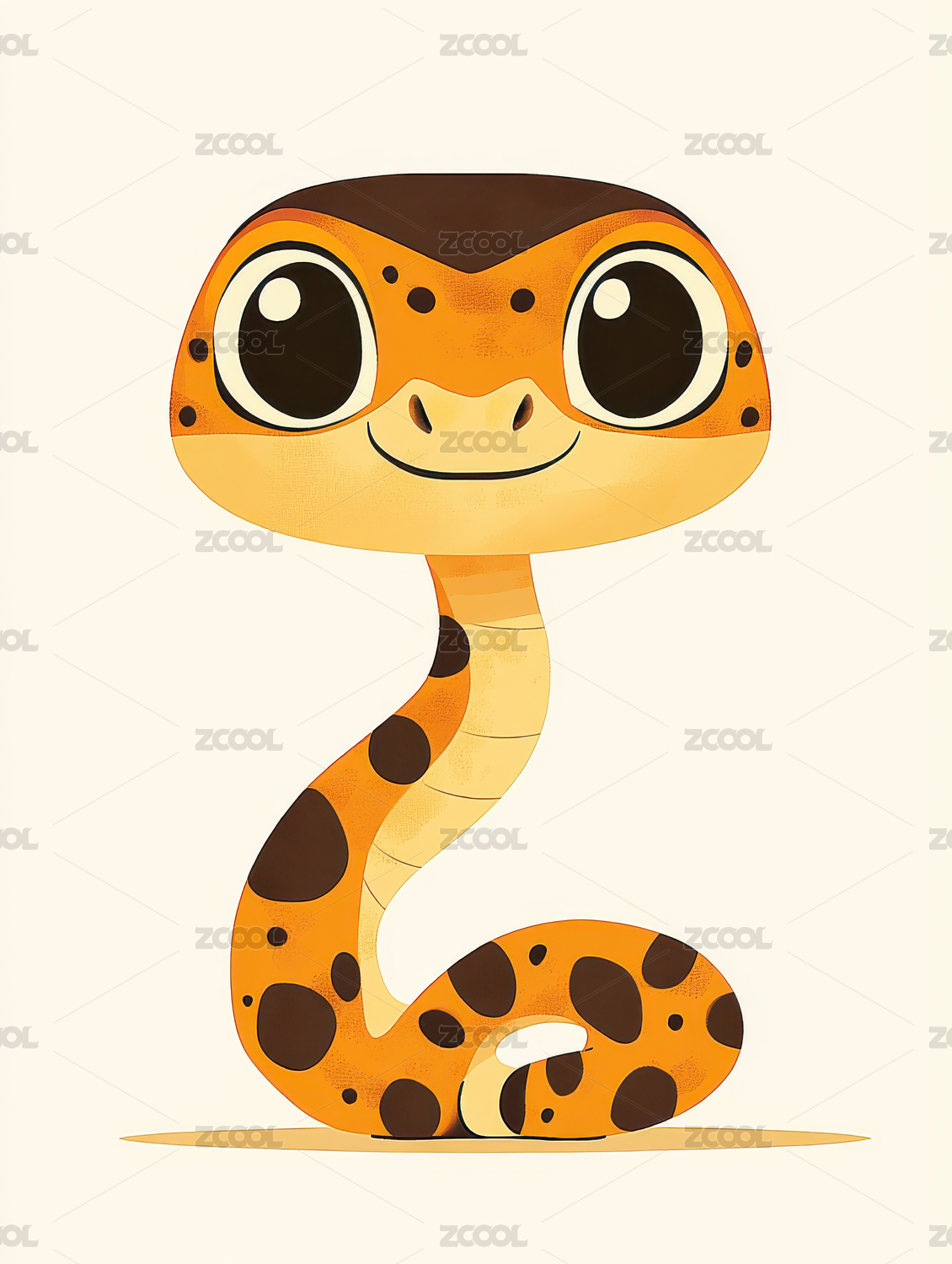 蛇,蛇年,新年,2025年,十二生肖,平面,肌理,插画,可爱,大眼睛