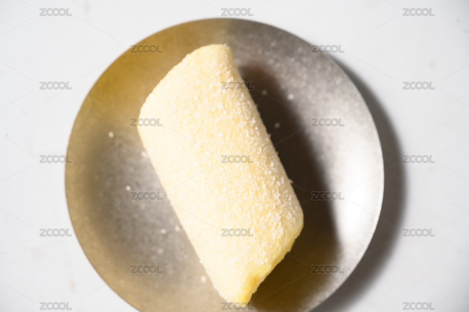 桌面上的盘子里的美味可口的夹心山楂奶糕
