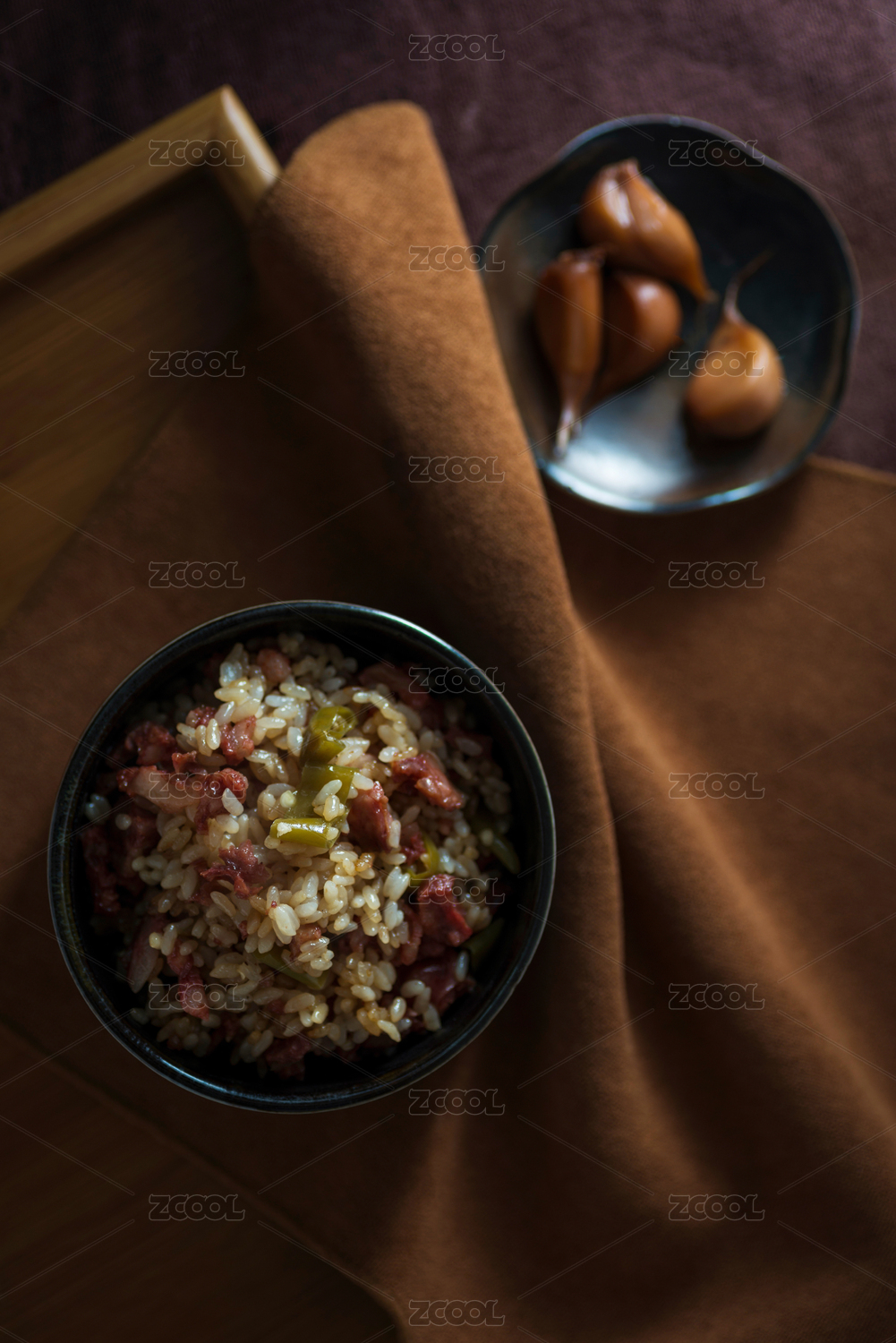 腊八蒜,腌大蒜,蒜瓣,大蒜,香肠焖饭,香肠饭,焖饭,米饭,麻辣肠,川味肠