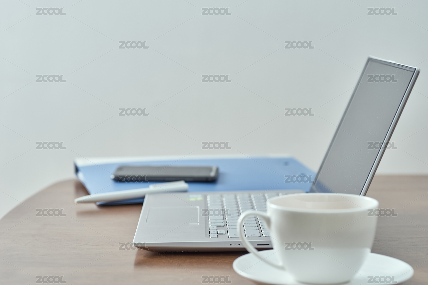 笔记本电脑,智能手机和鼠标咖啡放在办公桌上,业务