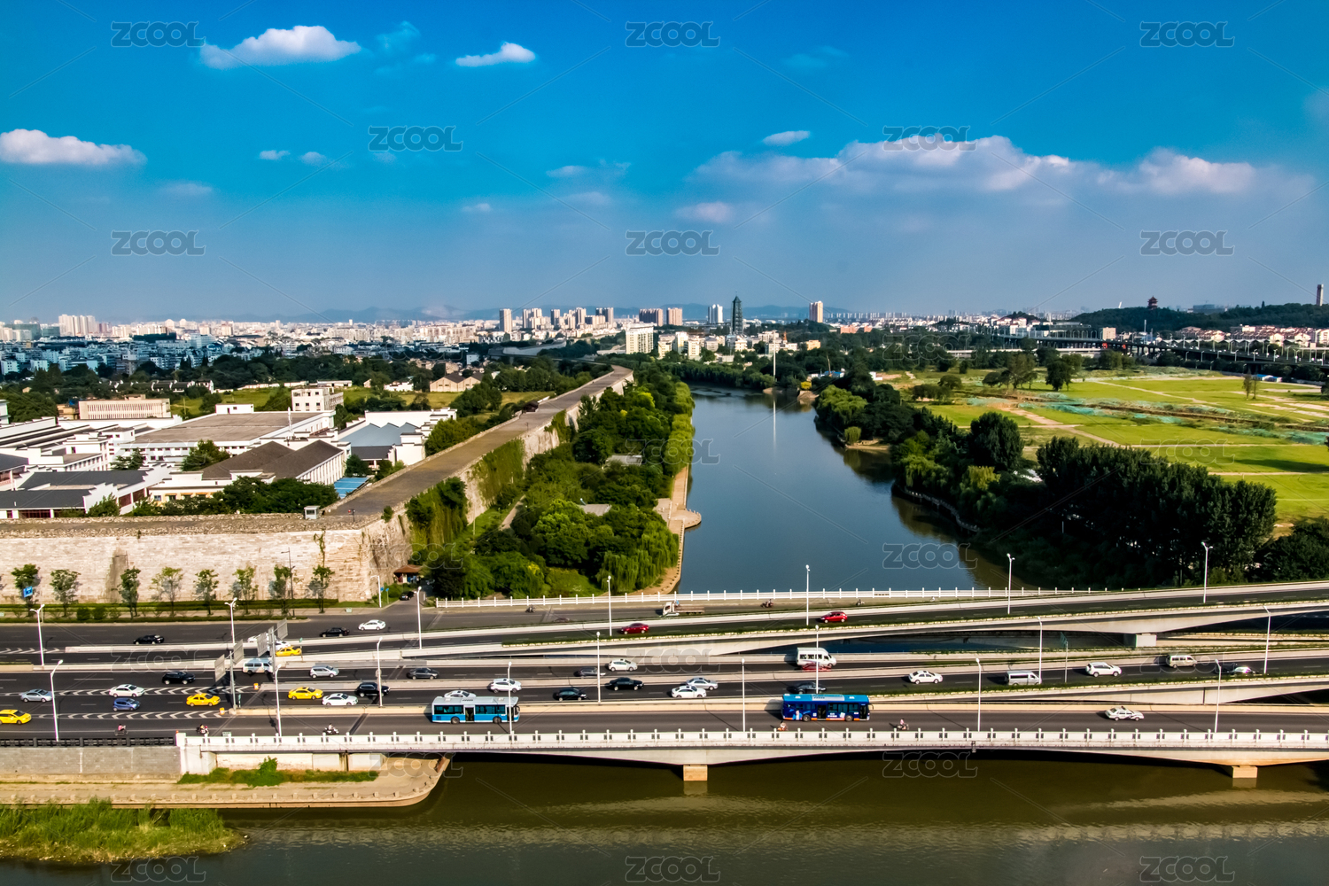 青州,山东,中国,城市,风光,建筑,楼房,河流,桥梁,夏天