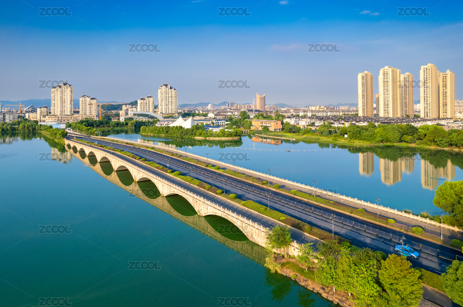 中国浙江省绍兴市大滩公园九虹桥城市环境