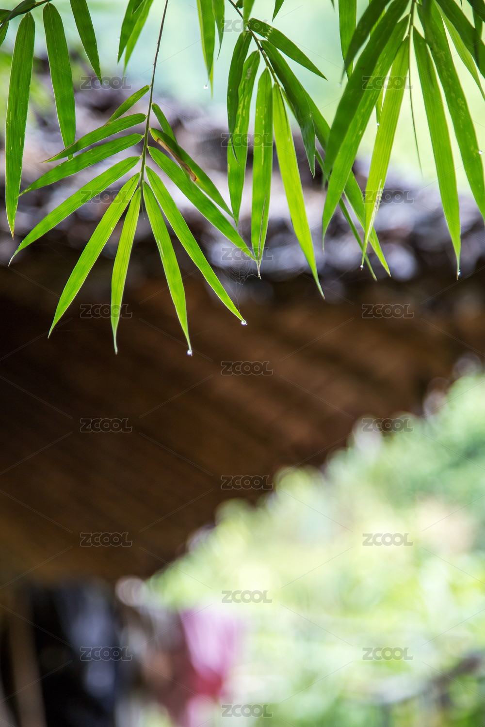 中式房屋外翠色的千层金依偎在黑瓦花窗旁
