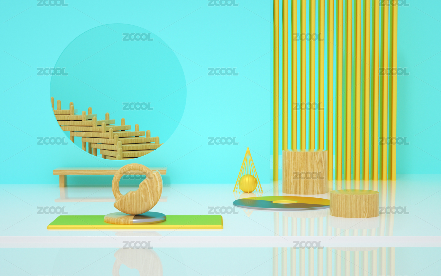 3d渲染几何体场景,电商摆件背景素材
