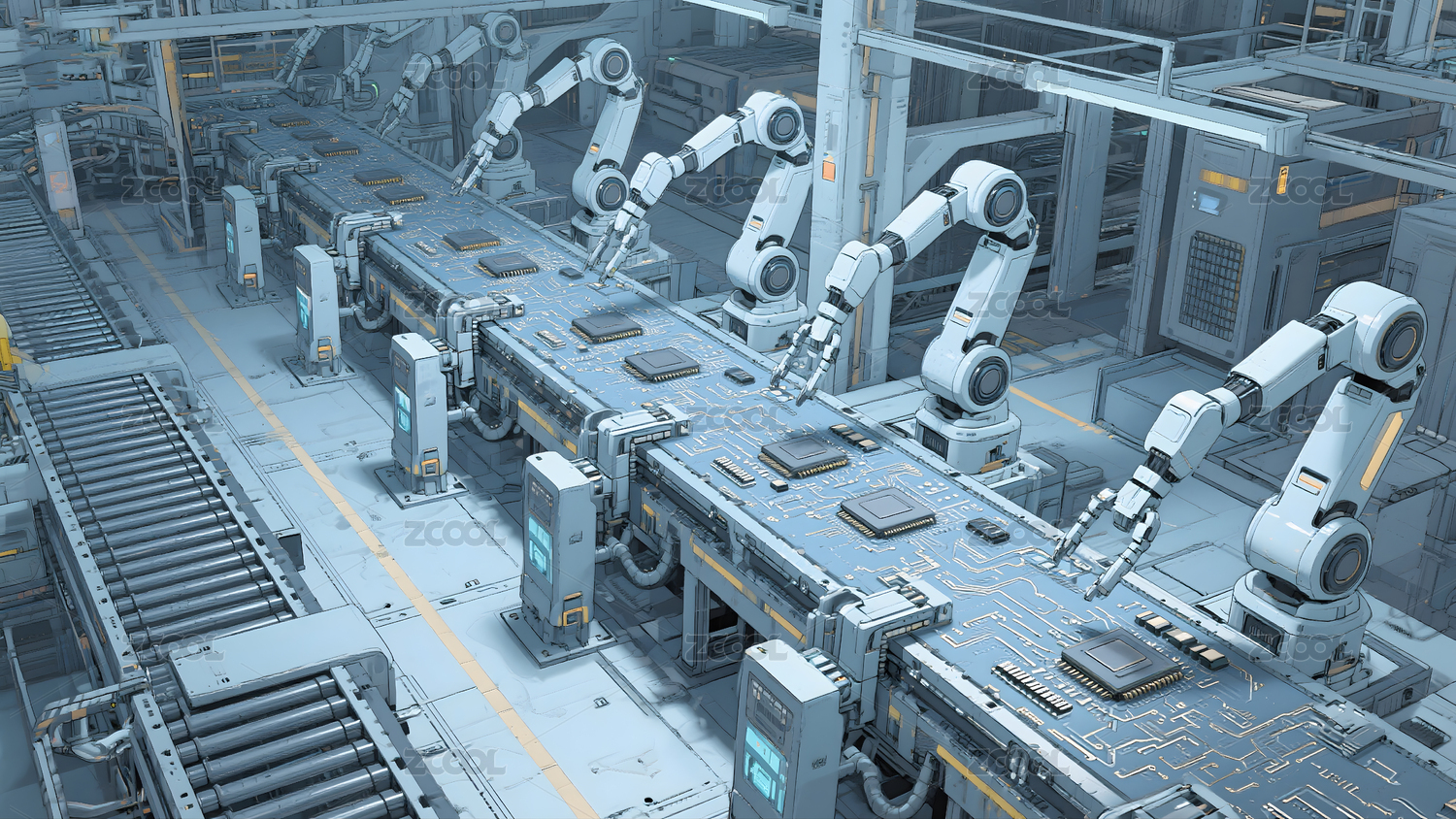 工厂,自动化,产线,机械臂,插画,插图,壁纸,背景,控制,科技