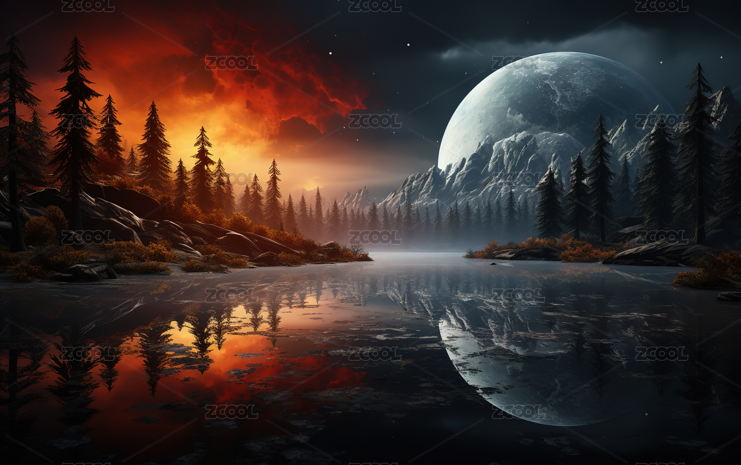 秋天,夜晚,森林,秋叶,小河,月光,神秘,宁静,树梢,丛林