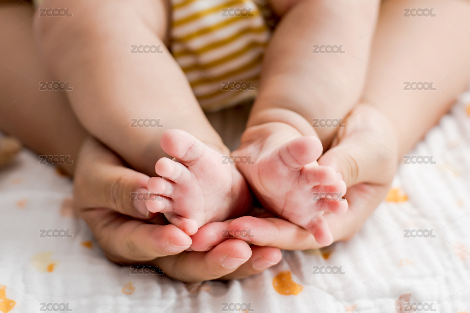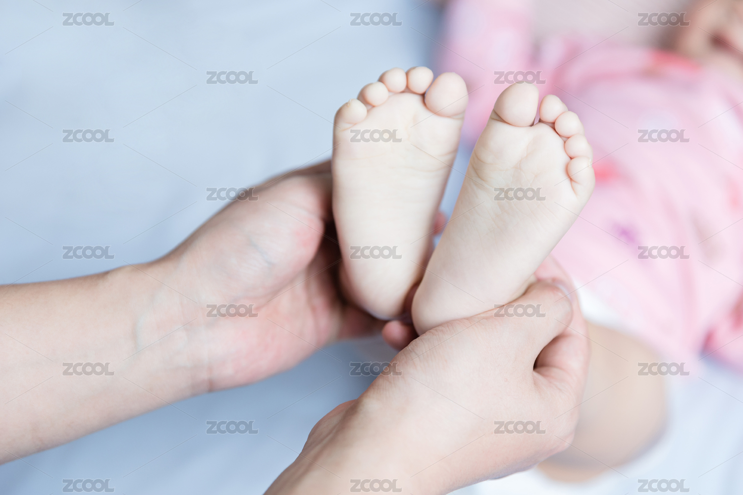 妈妈用手托住婴儿胖嘟嘟的小脚丫