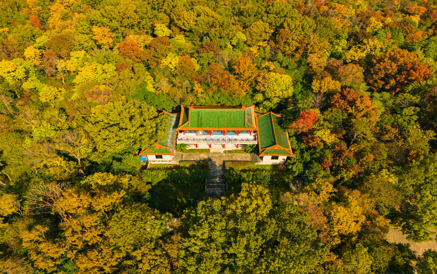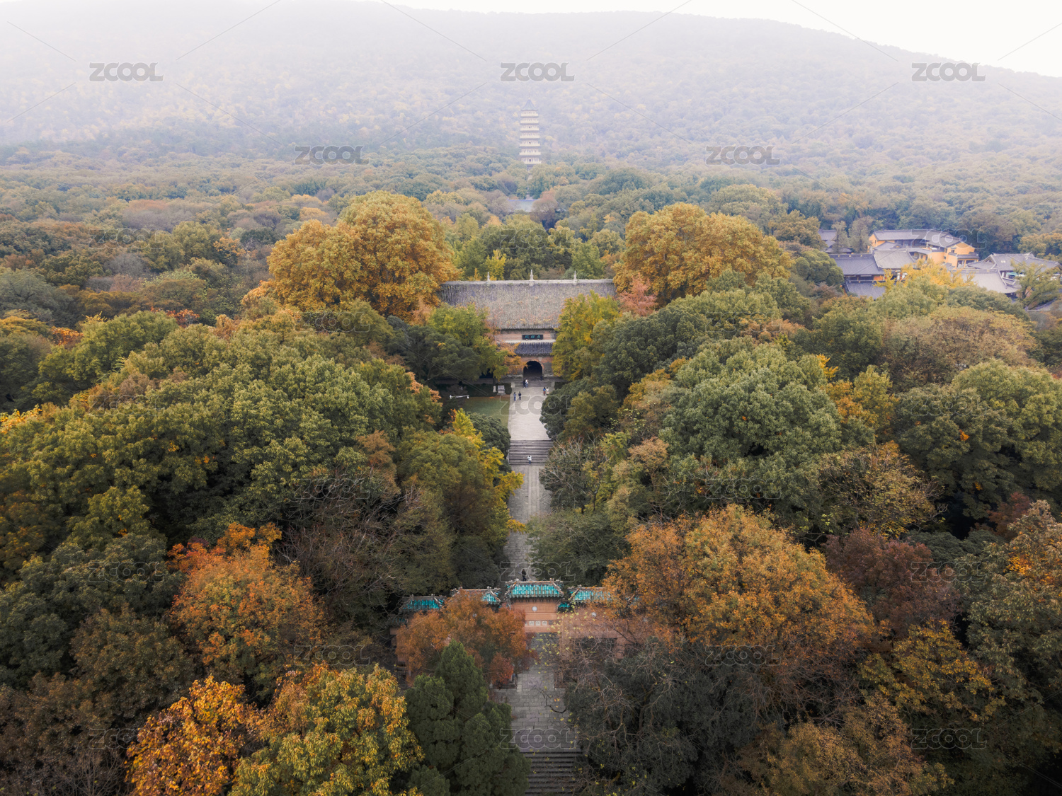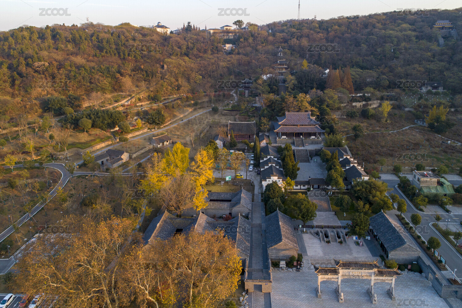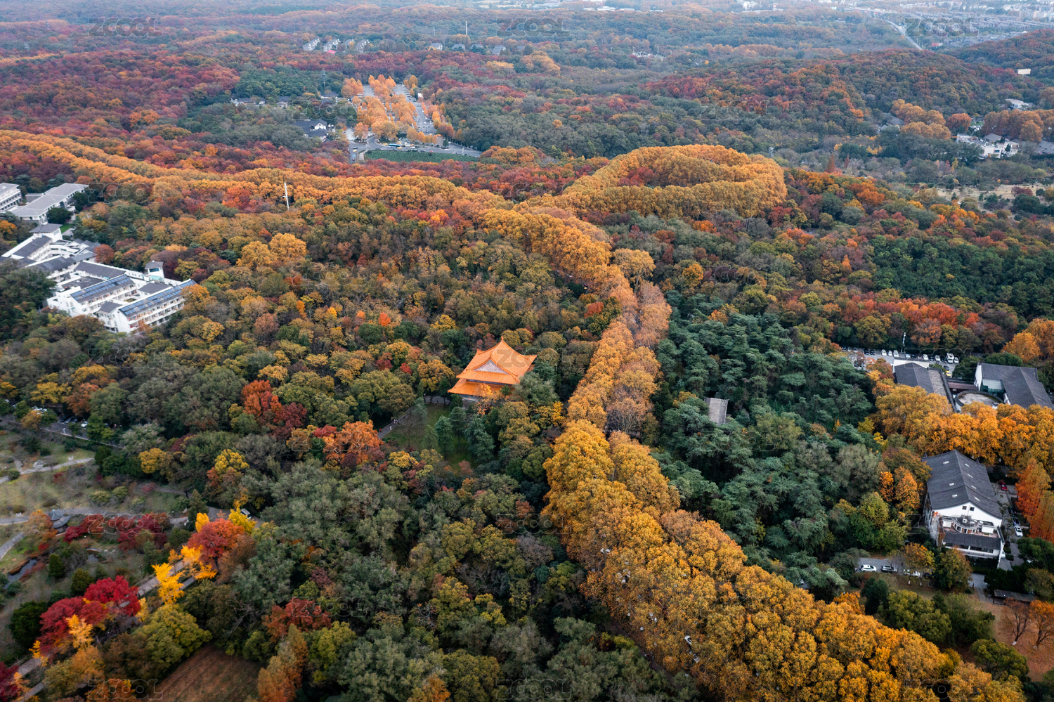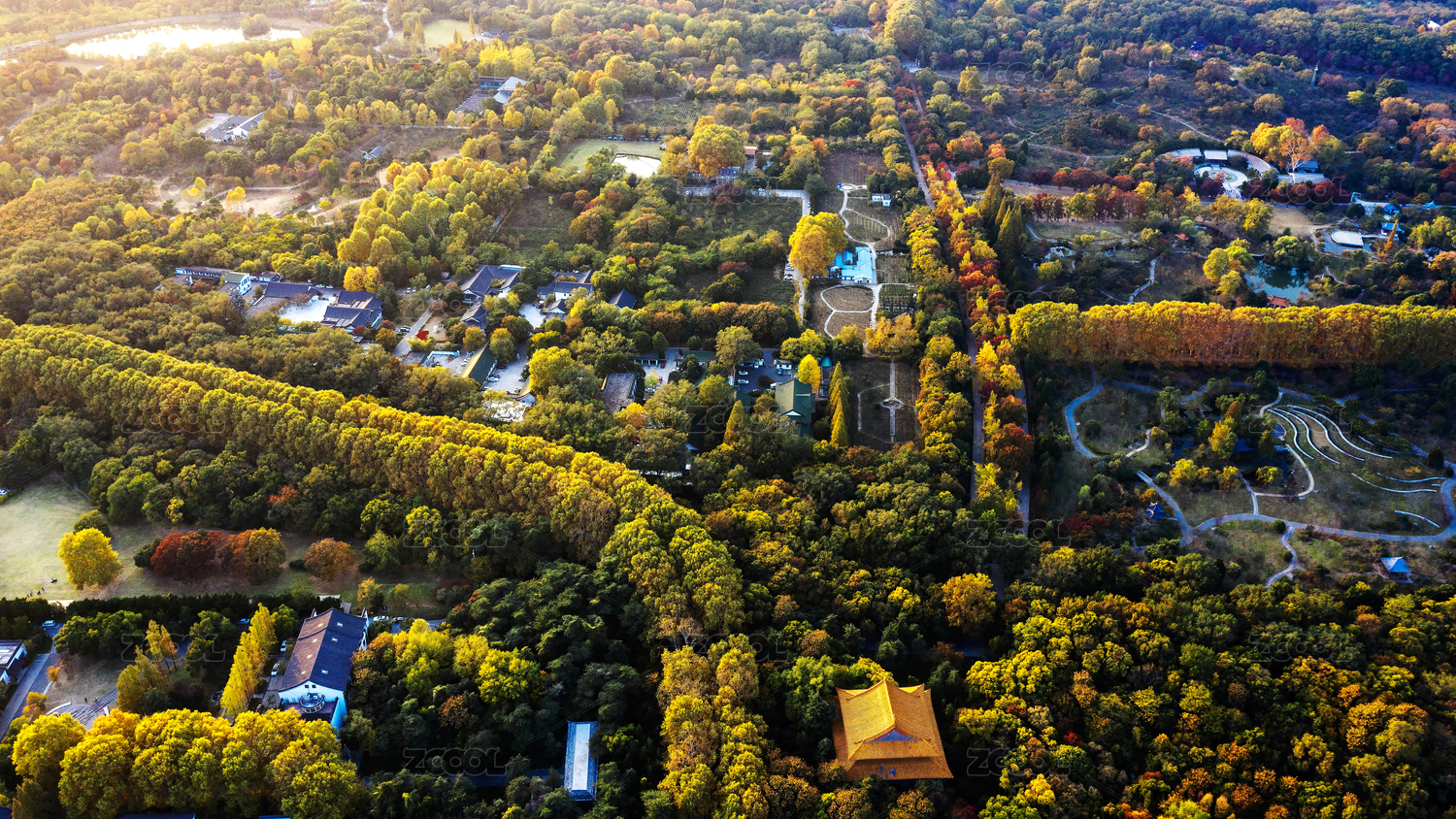 中国南京钟山秋季航拍风光