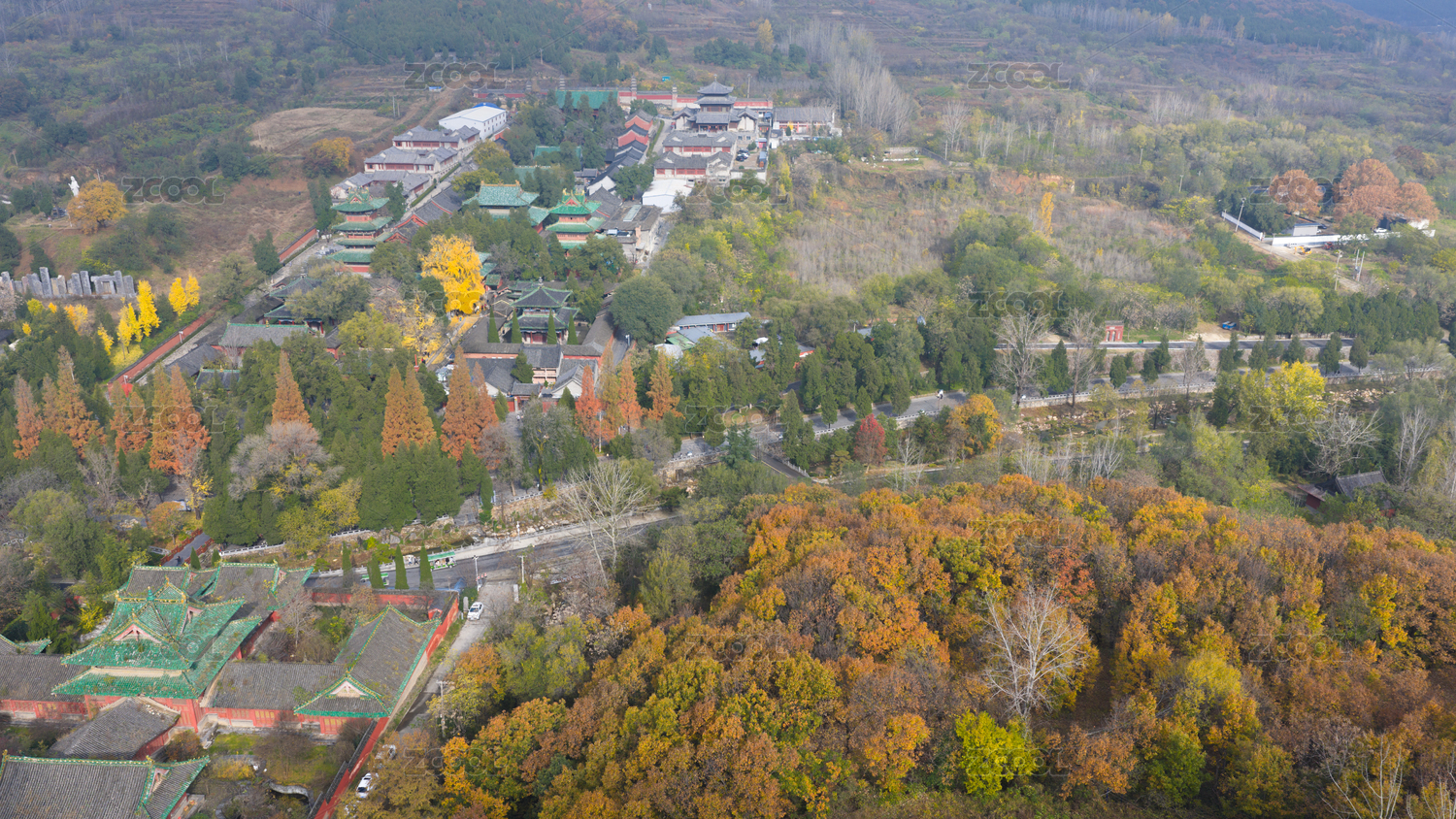 河南郑州嵩山少林秋日层林尽染美如画