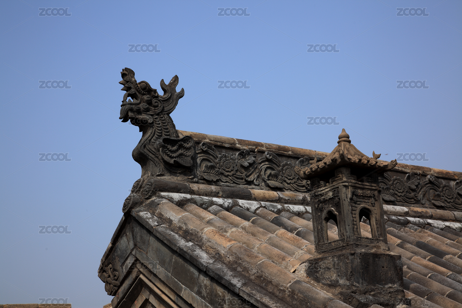 中国山西省武乡县民宅房梁凤凰屋脊装饰建筑