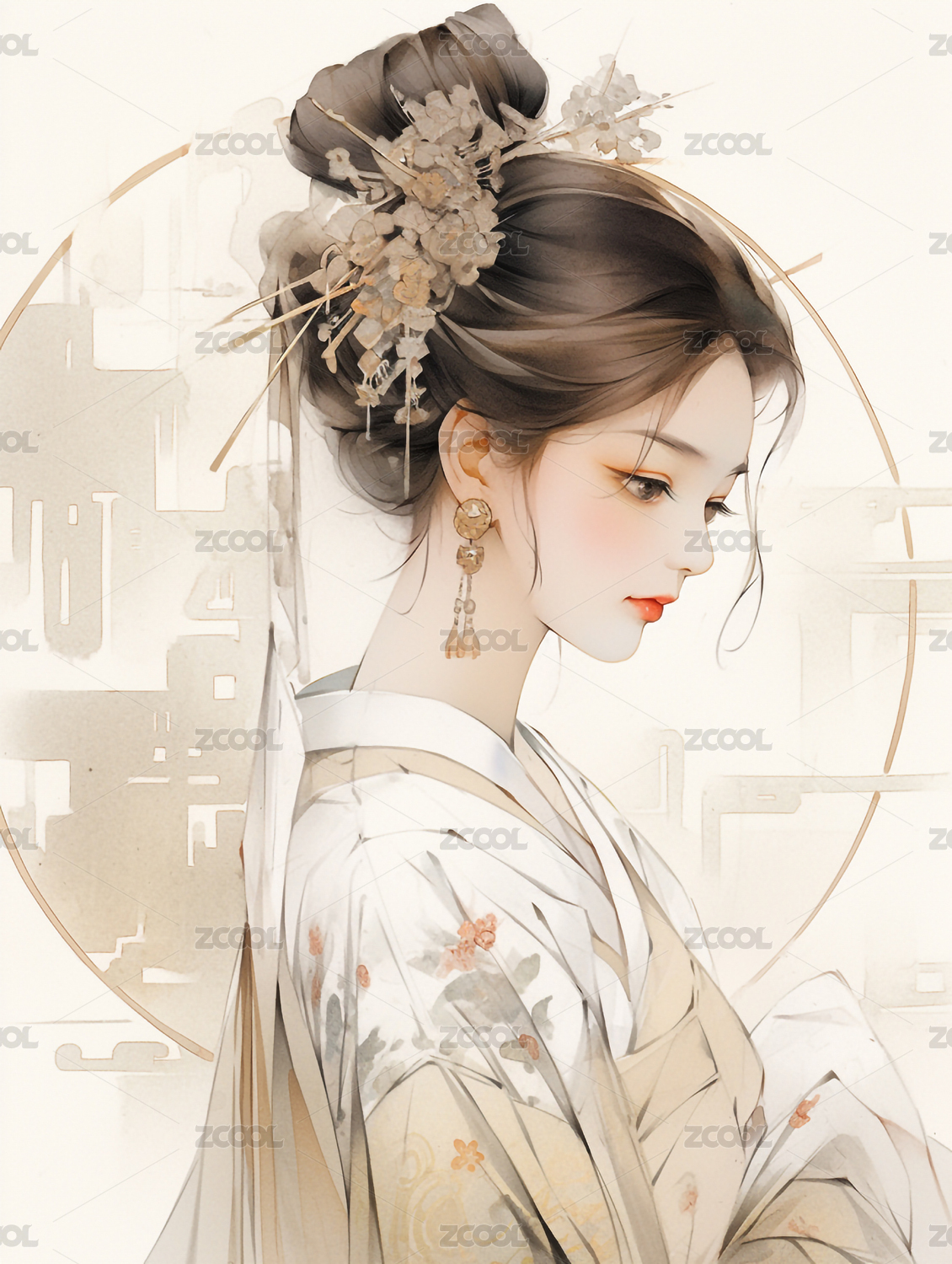 唯美身着古装华丽头饰的美丽女孩侧脸