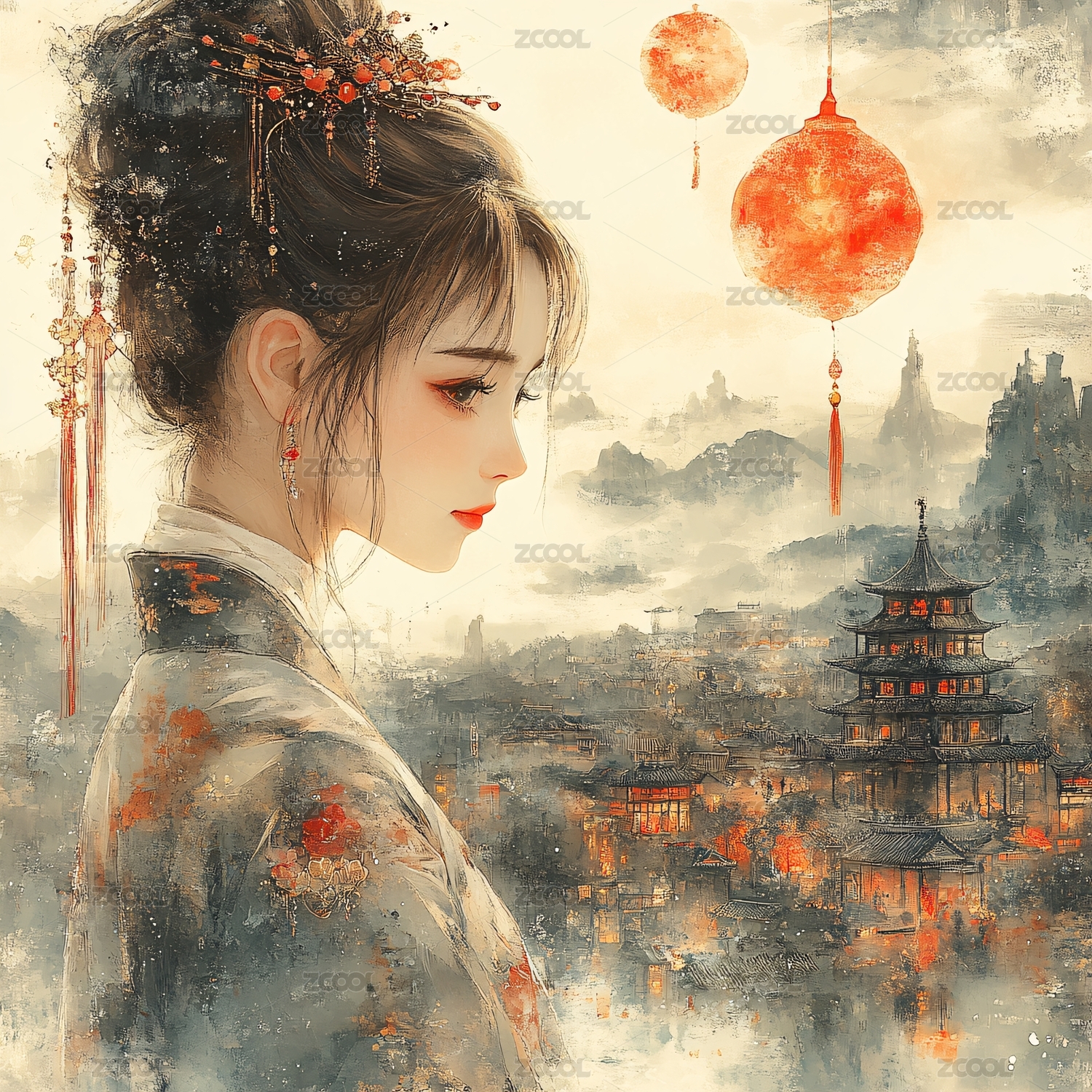 中国,国风,国潮,插画,神话,人物,仙女,神仙,古典,美人
