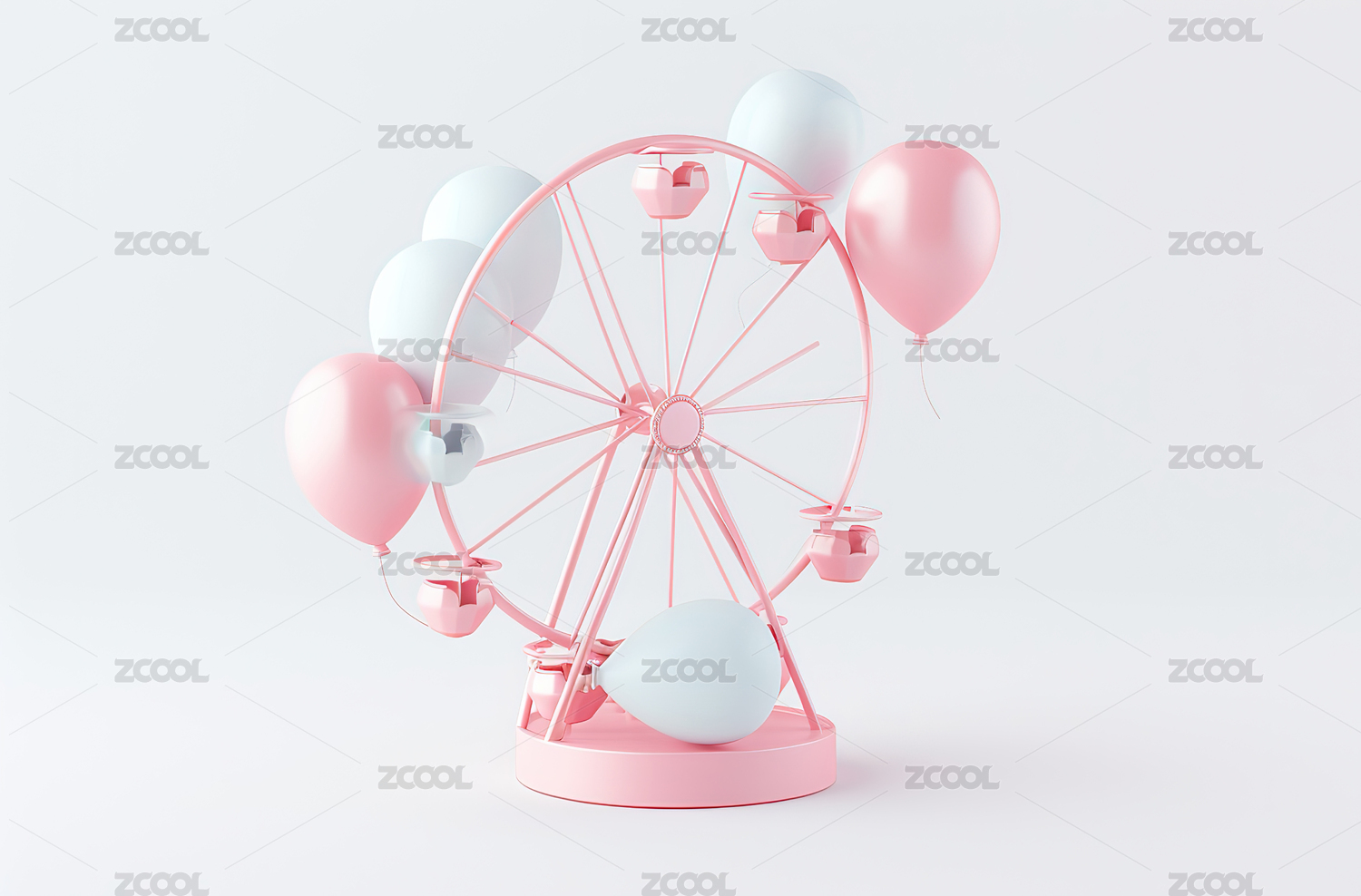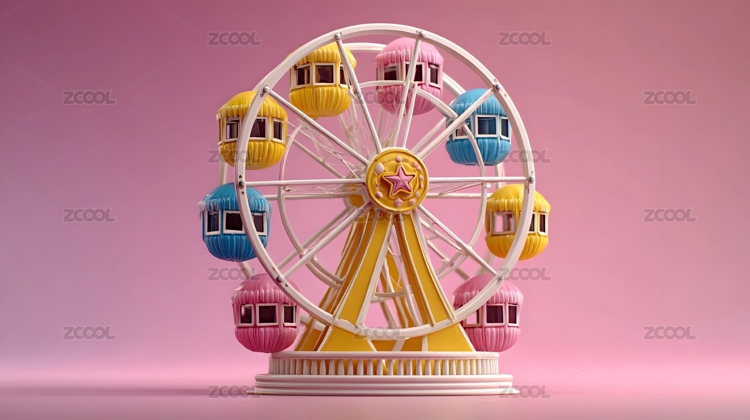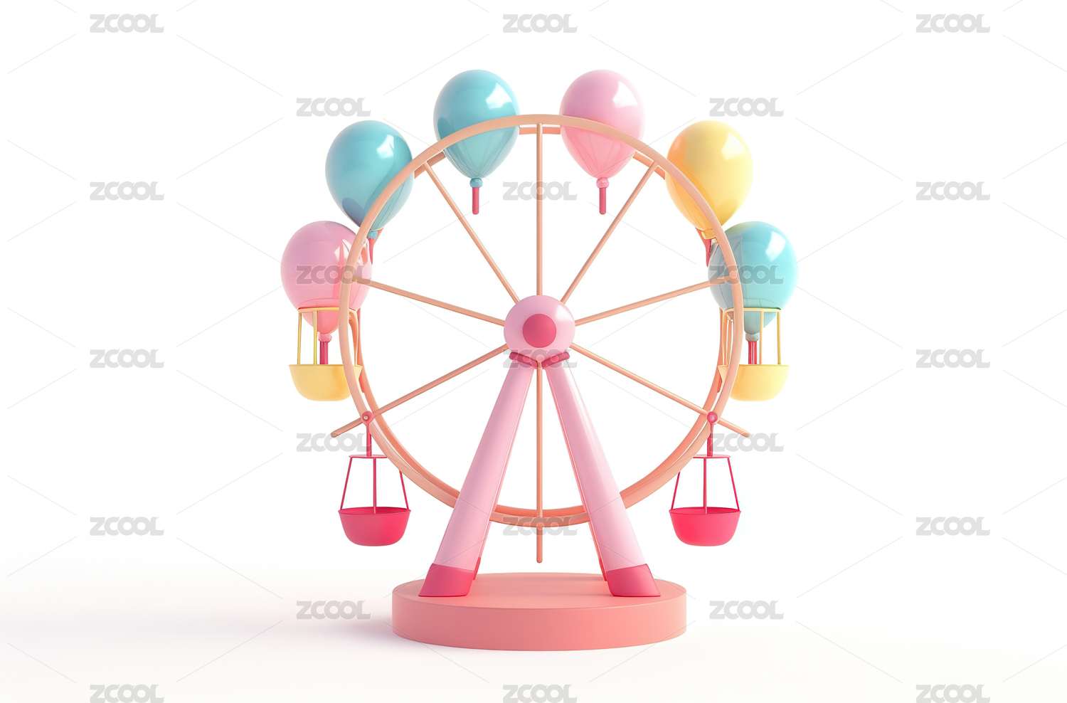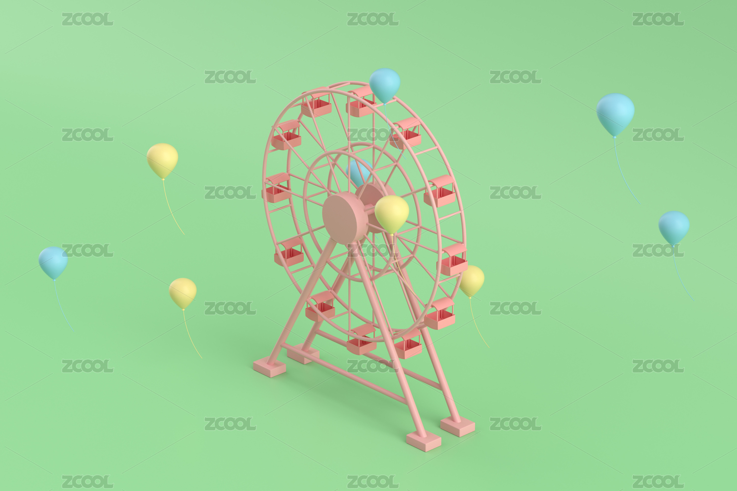 六一儿童节亲子乐园儿童摩天轮童年3D插画