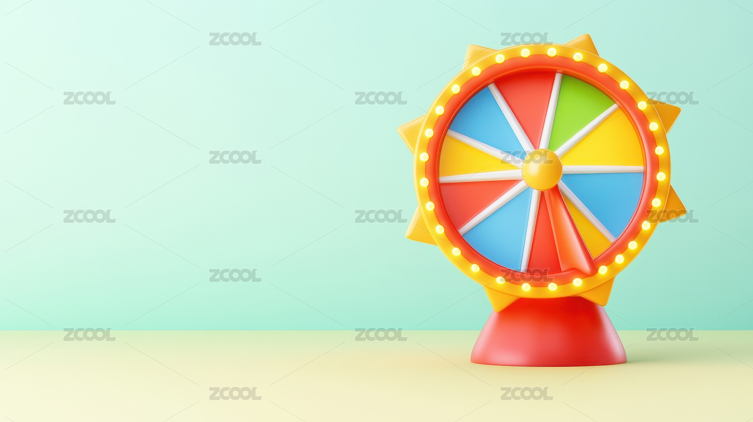 卡通幸运转盘抽奖盘和奖品抽奖活动3D渲染