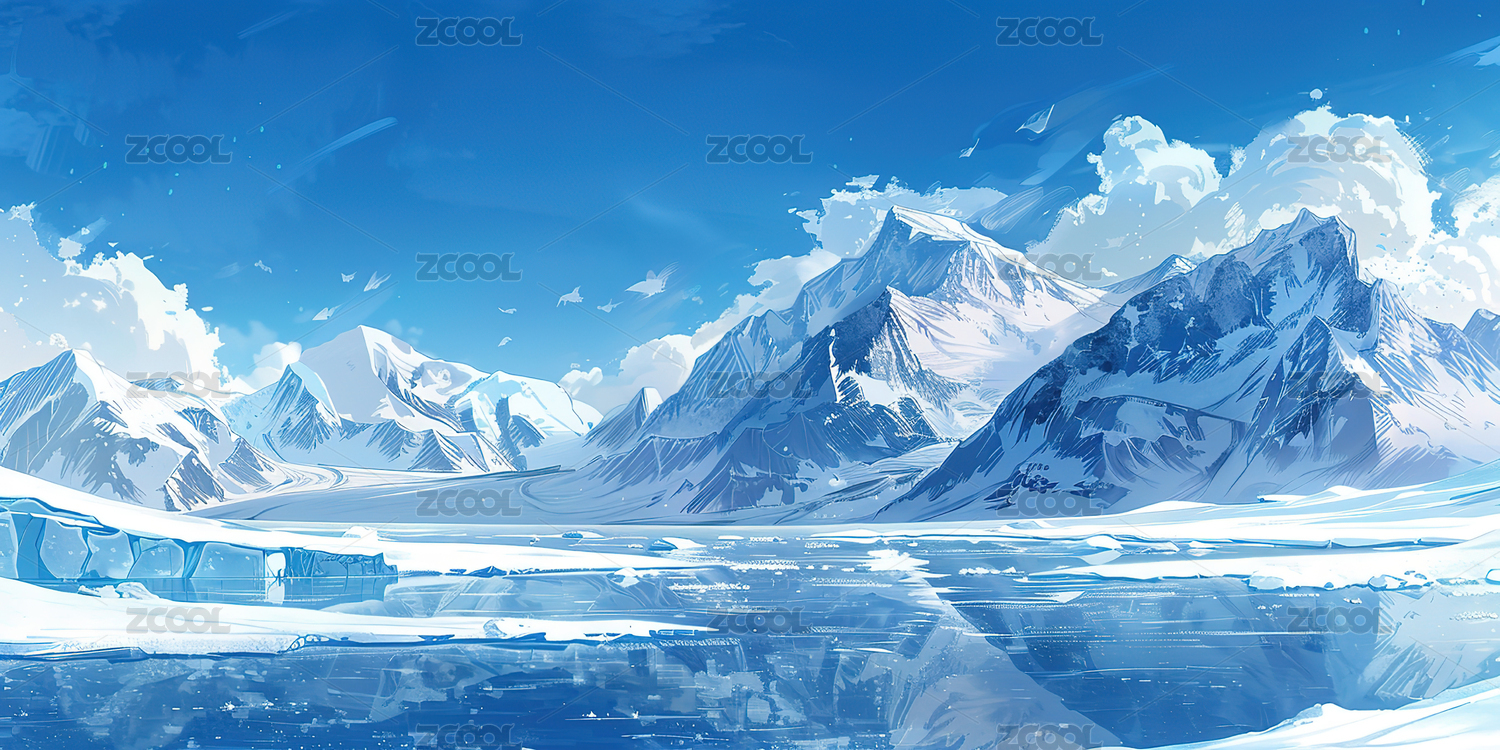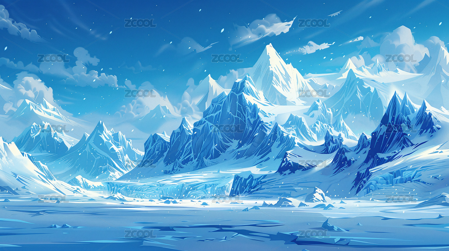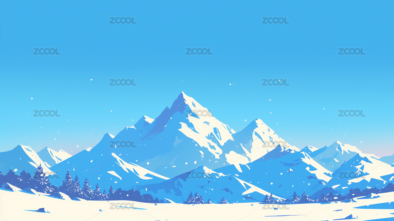 白天晴朗白雪覆盖的巍峨山峰雪山3D插画