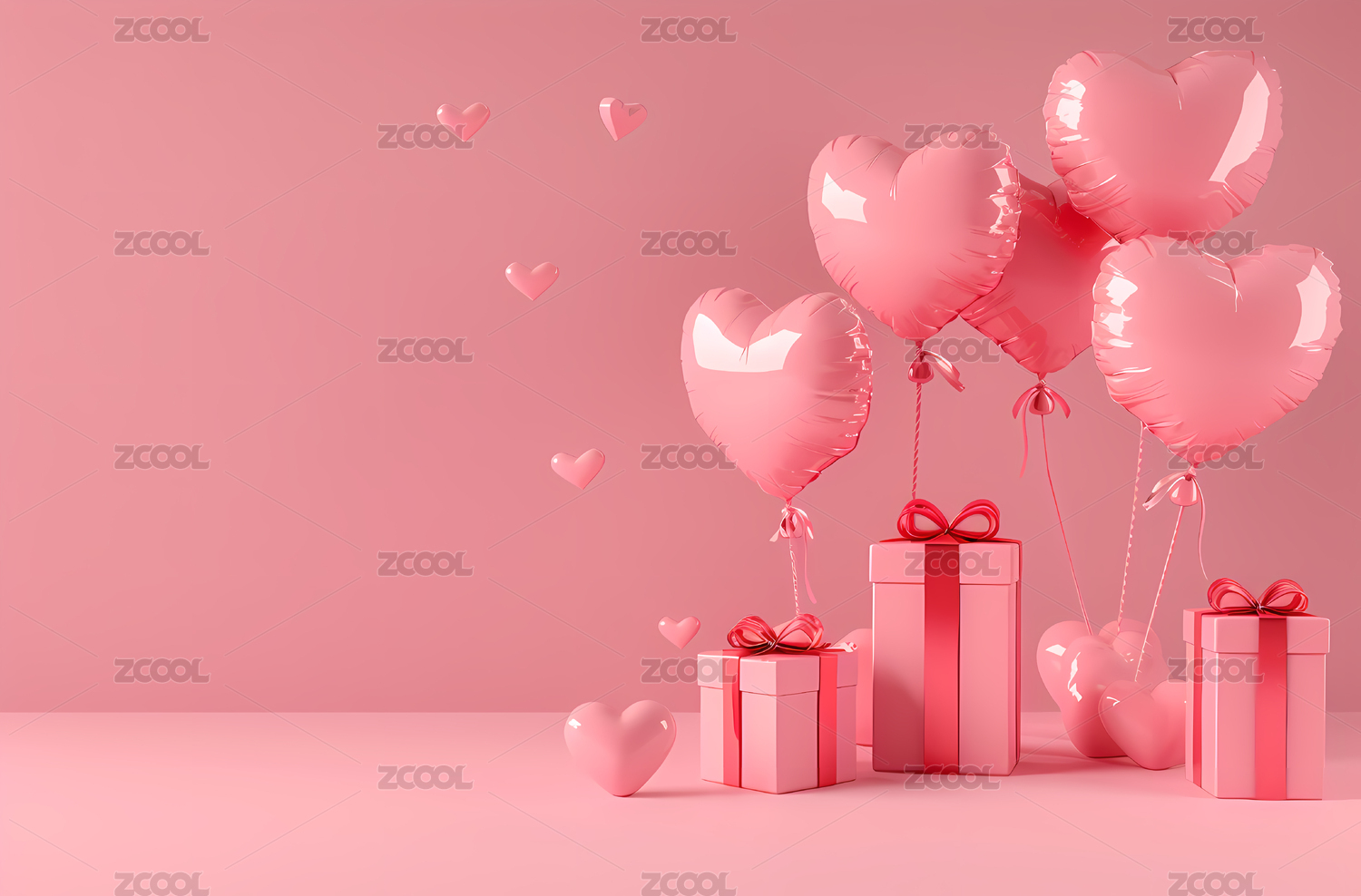 心形的粉色气球和礼盒
