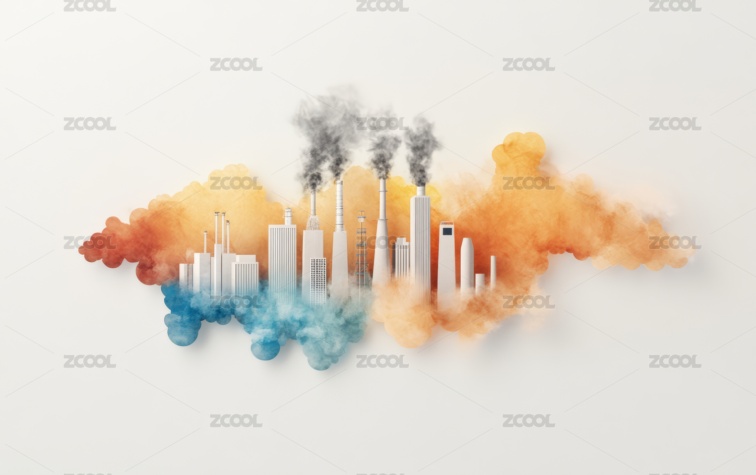 工业污染与环保主题平面艺术插画