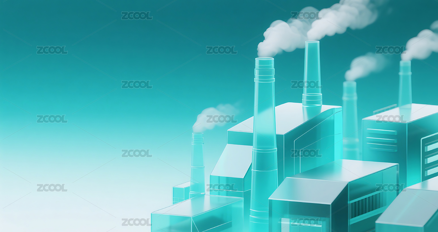 蓝绿色玻璃质感渐变工厂建筑背景
