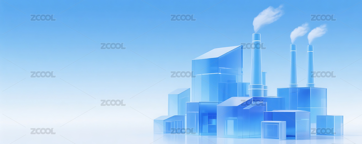 蓝色玻璃质感渐变工厂建筑背景