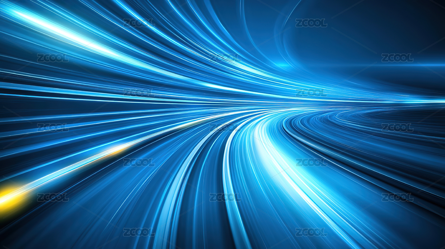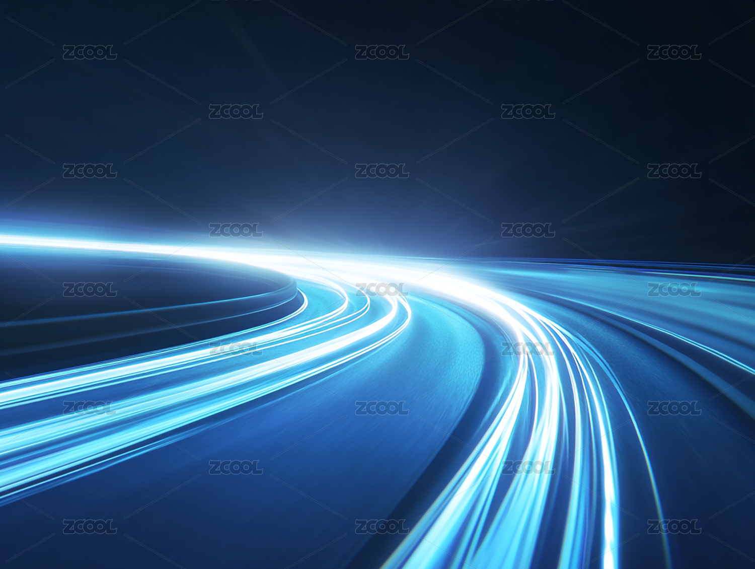 蓝色光轨发光线条未来科技概念配图
