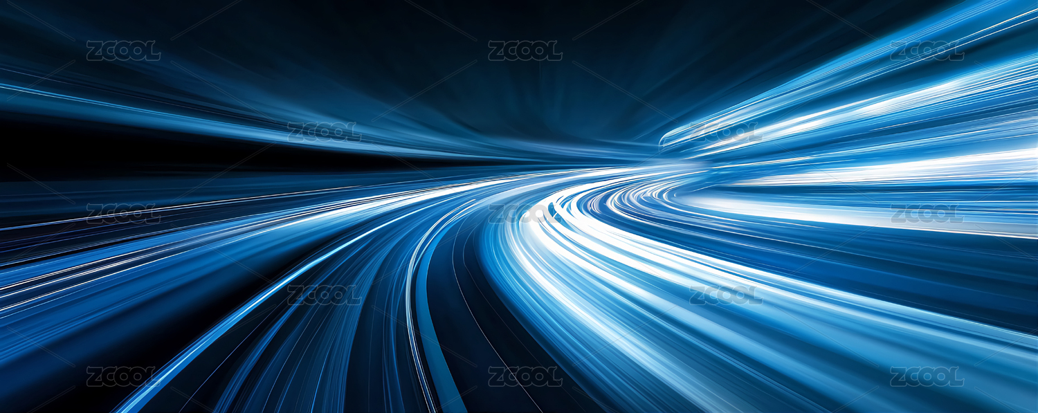 蓝色光轨车轨科技概念抽象配图
