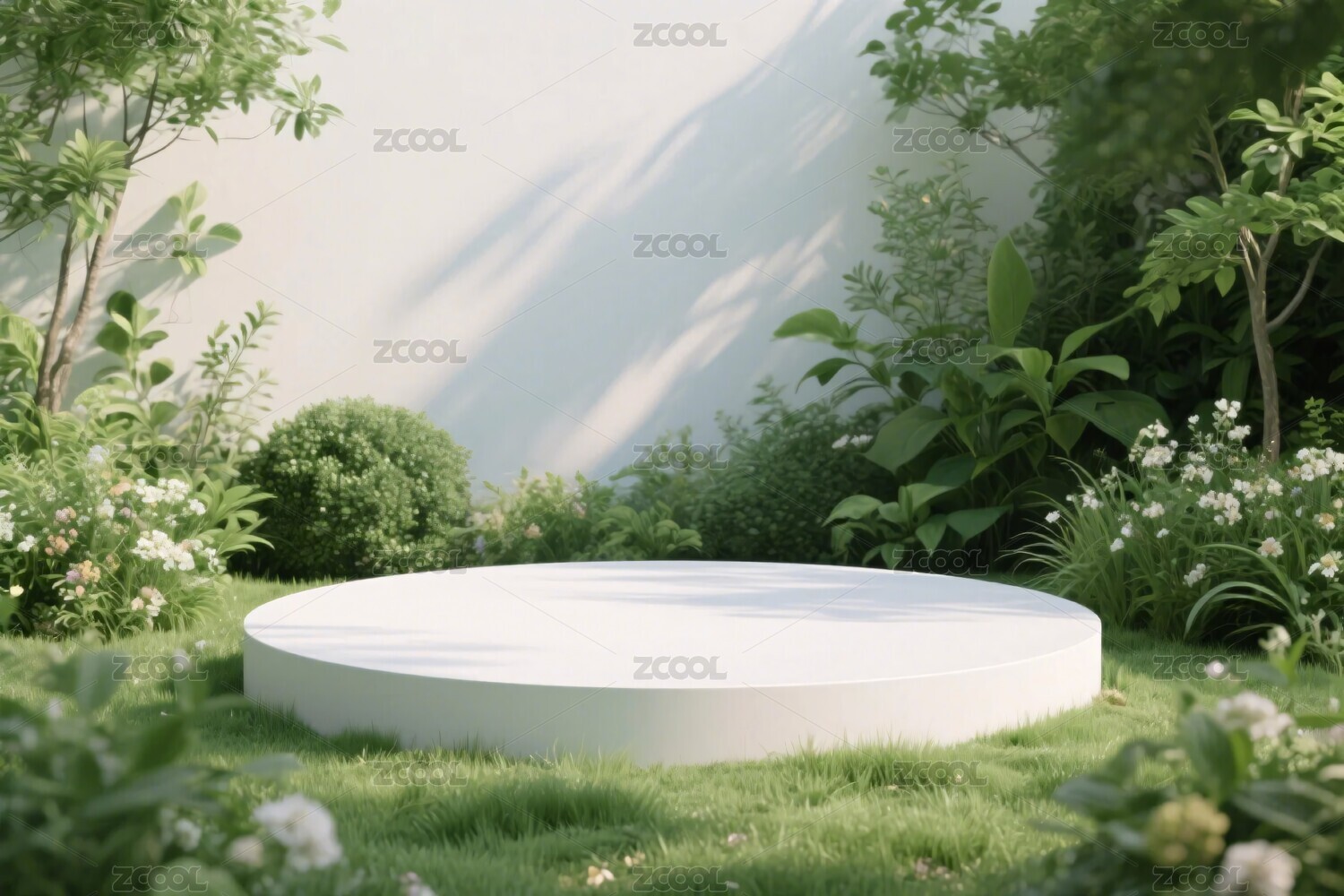 自然花园中的白色展台