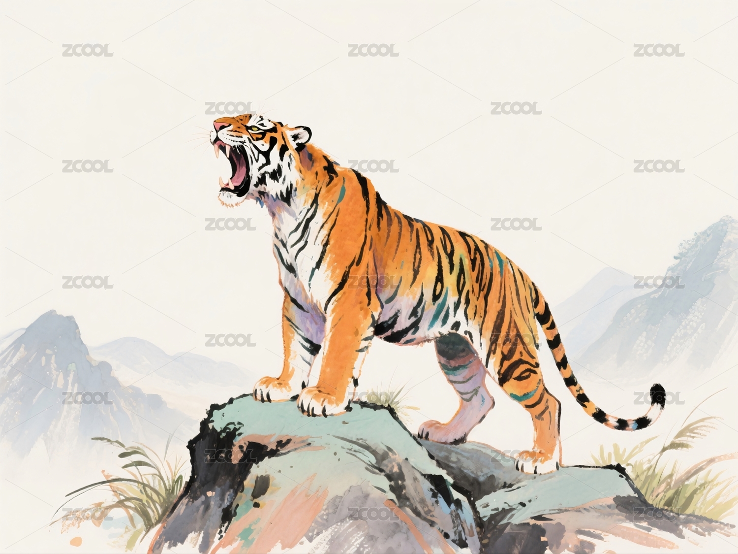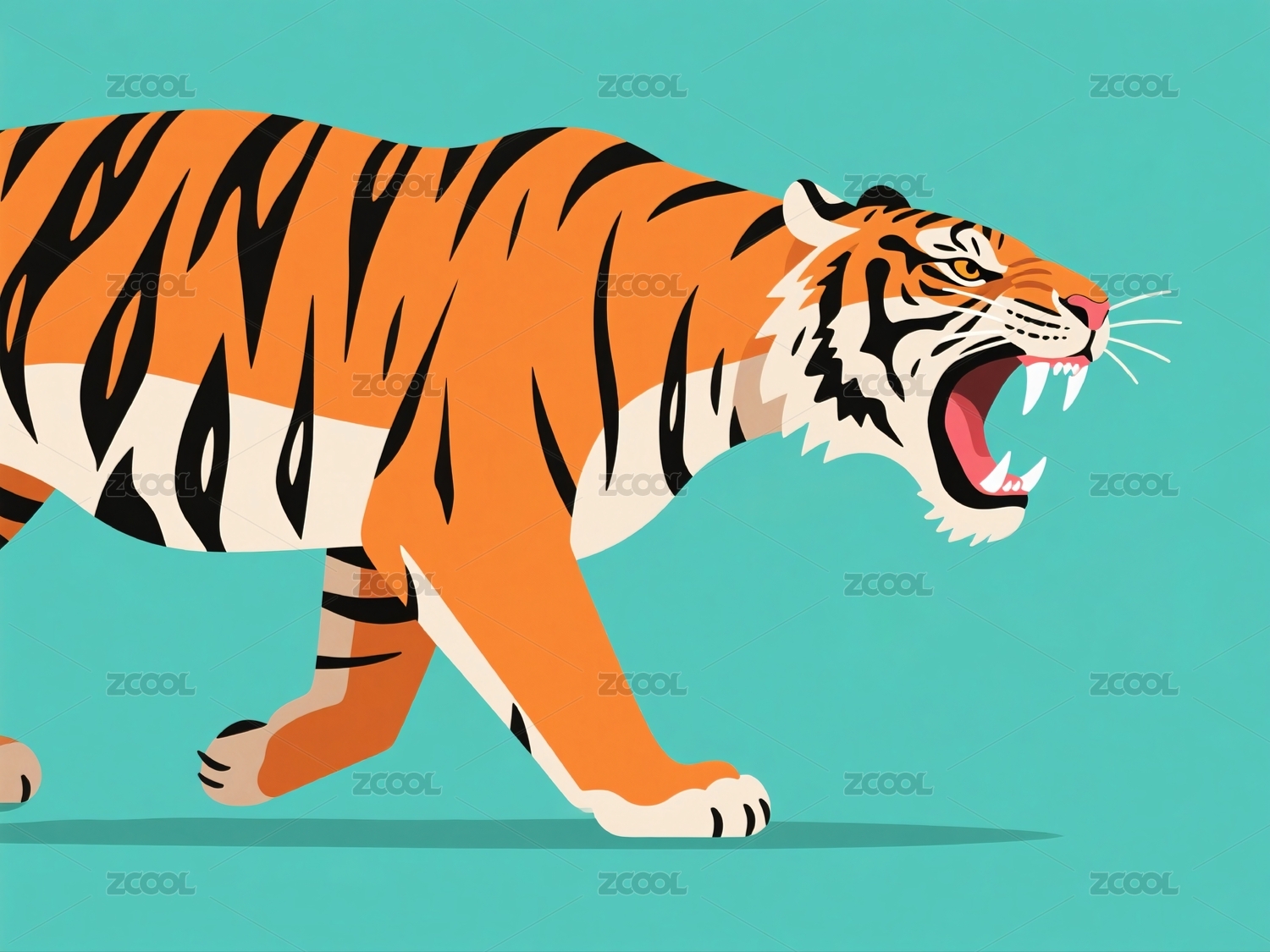 凶猛老虎插图色彩大胆