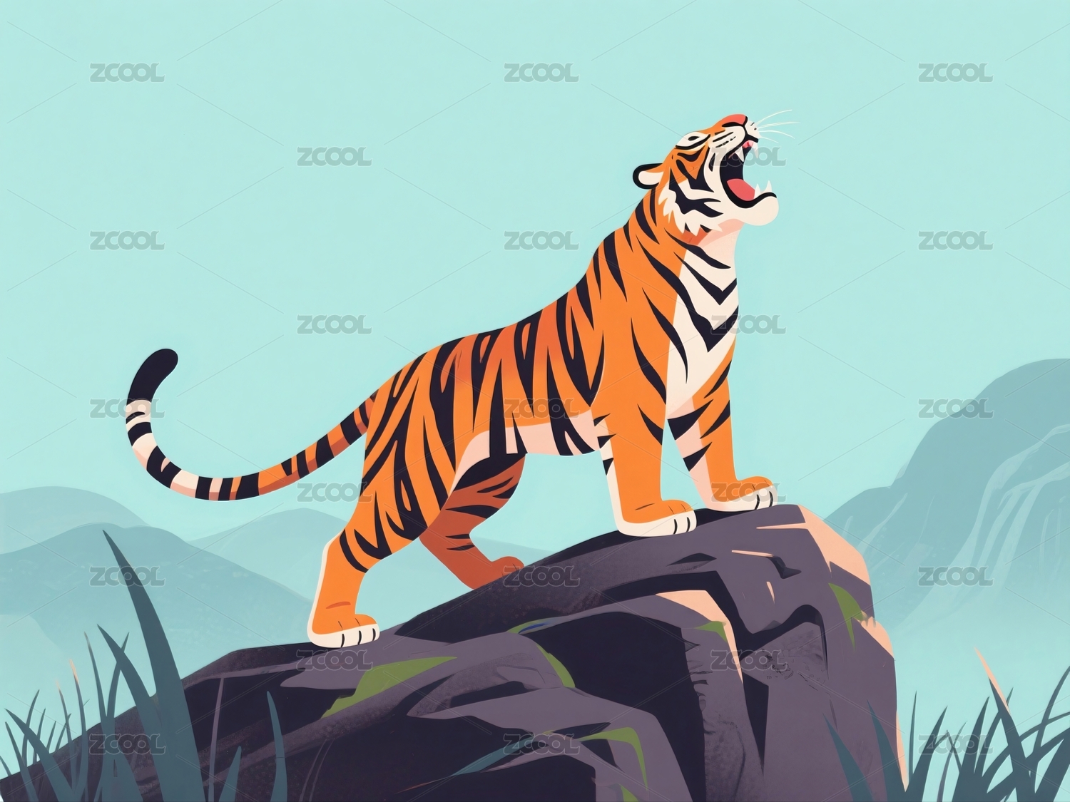 凶猛咆哮的老虎形象艺术插画