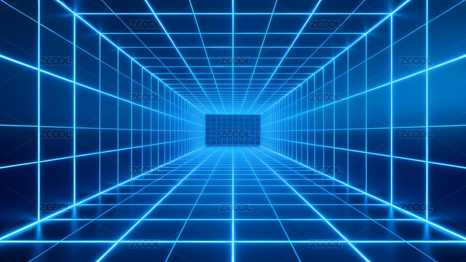 蓝色网格隧道透视图