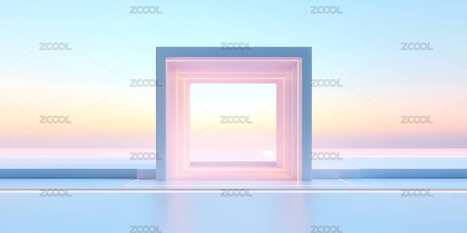 科技未来主义蓝色几何舞台插画海报背景