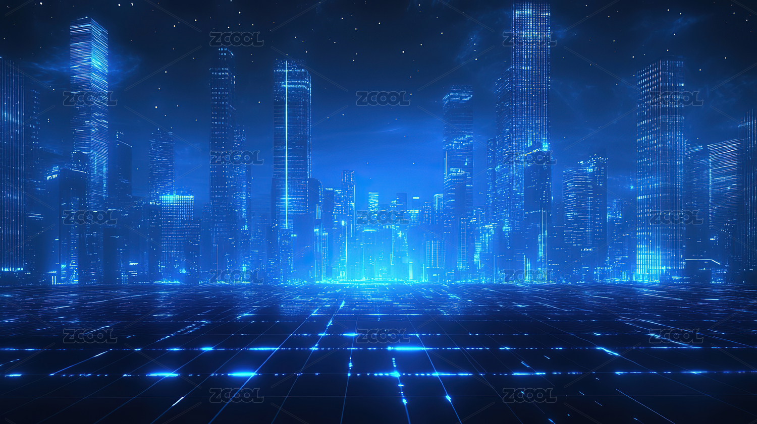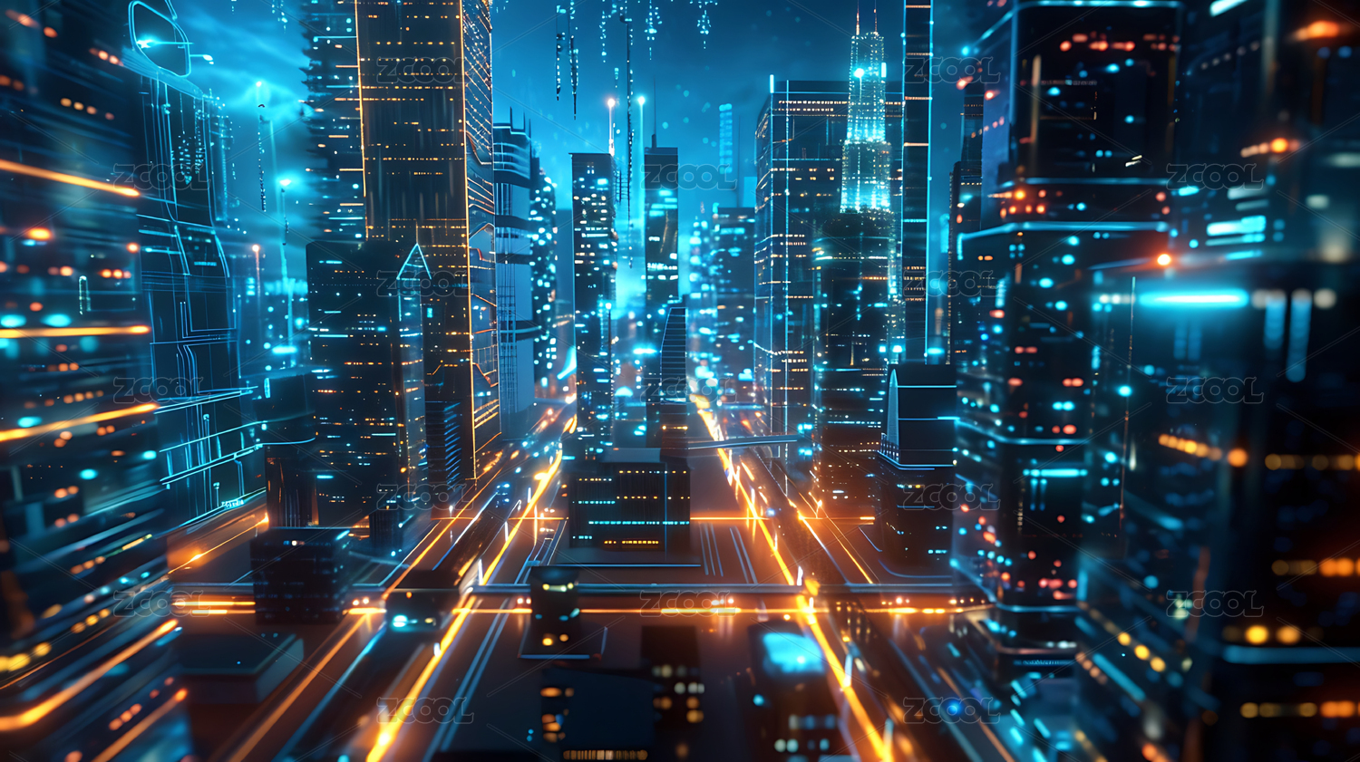 科学技术,AI数字艺术,城市,夜晚,摩天大楼,数据,背景,智慧城市,互联网,商务