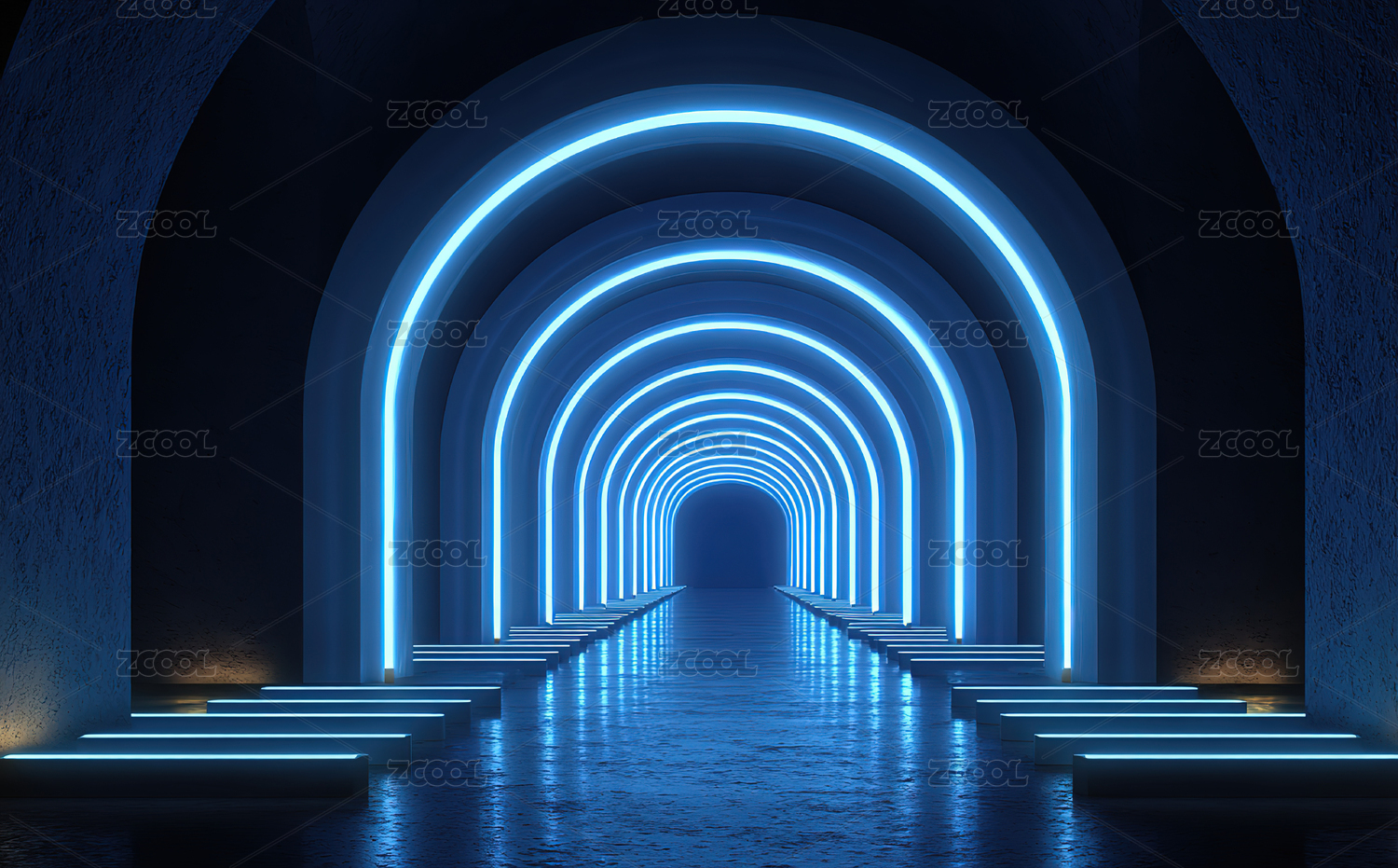 蓝色霓虹拱形隧道