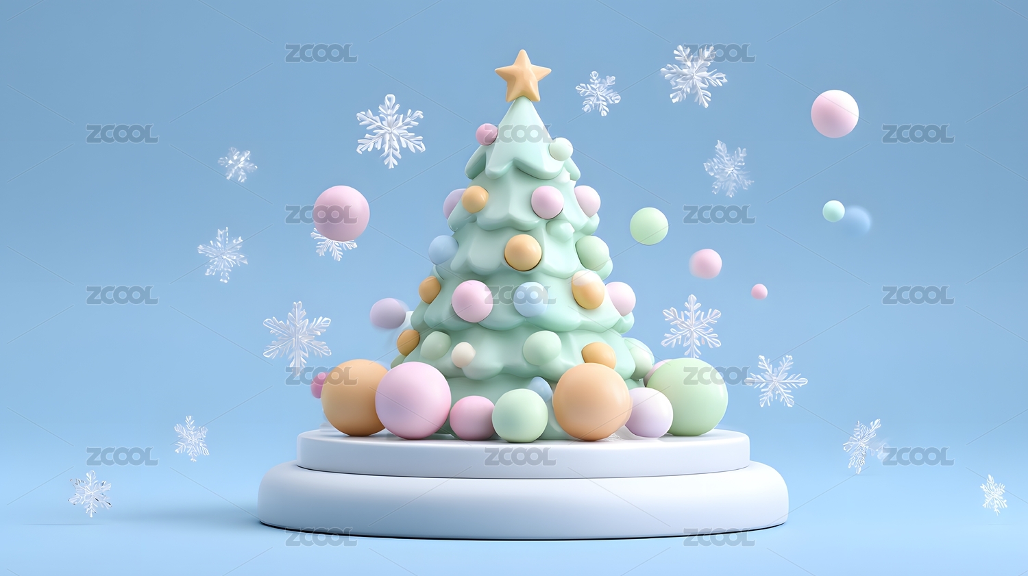 圣诞节圣诞树庆祝冬天假期节日新年3D插画