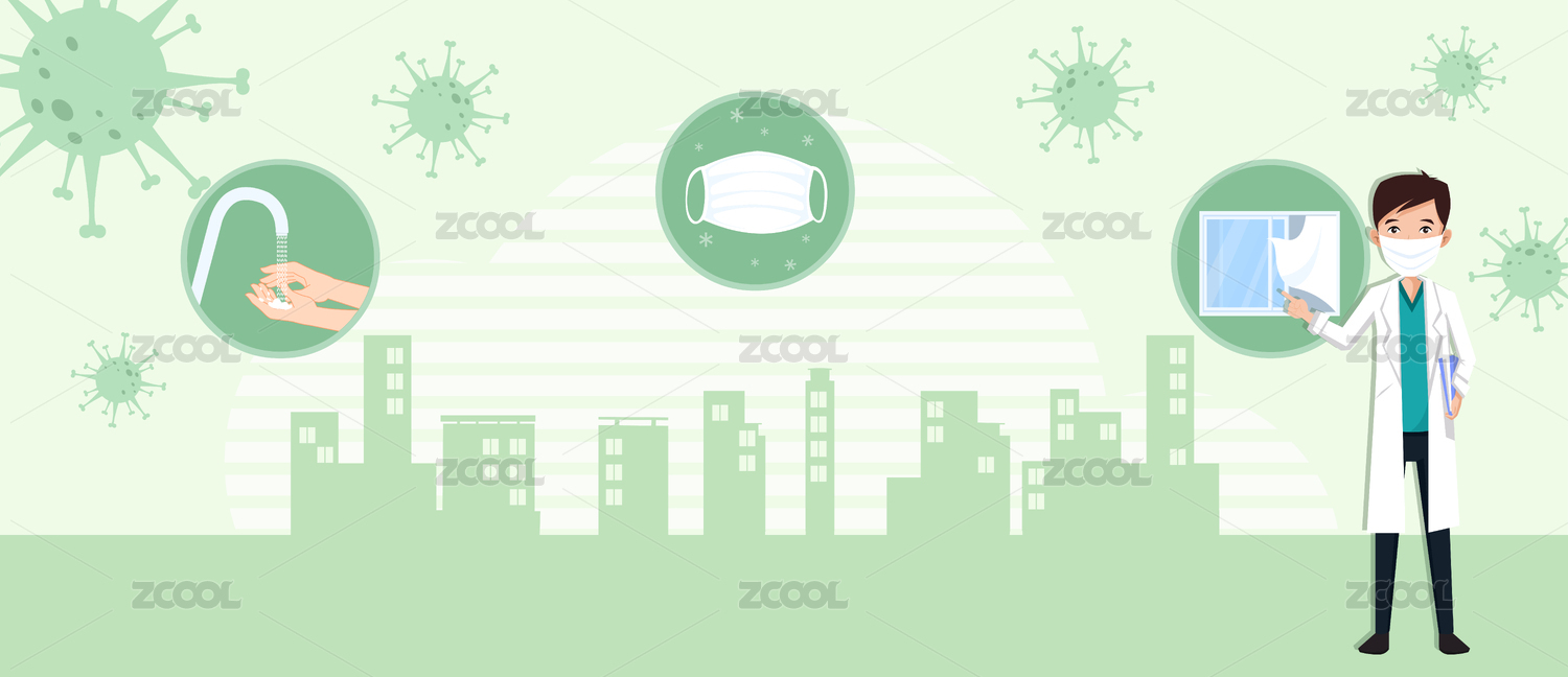 抗击疫情防护洗手通风戴口罩插画矢量图