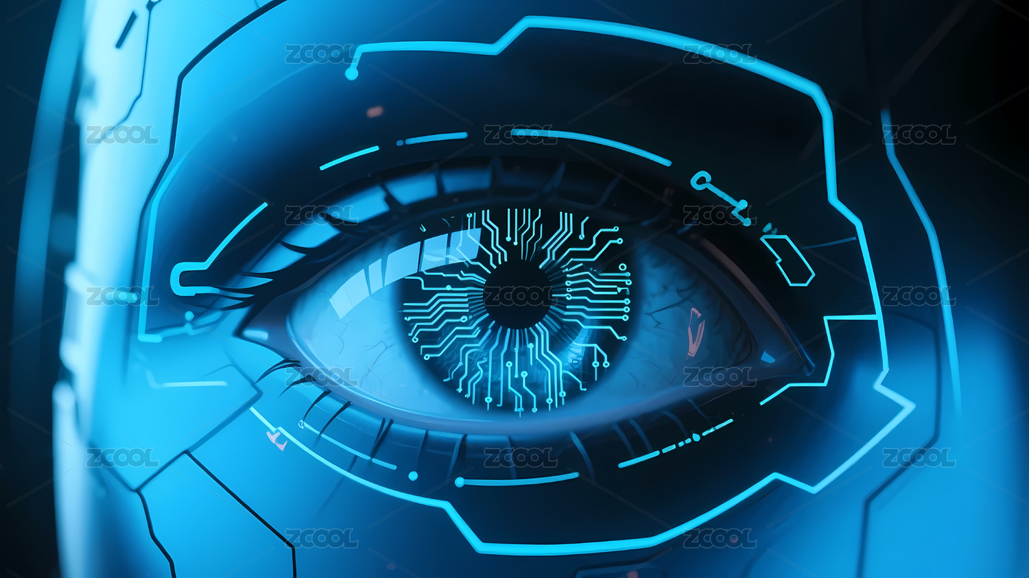 蓝色眼睛与电路板图案