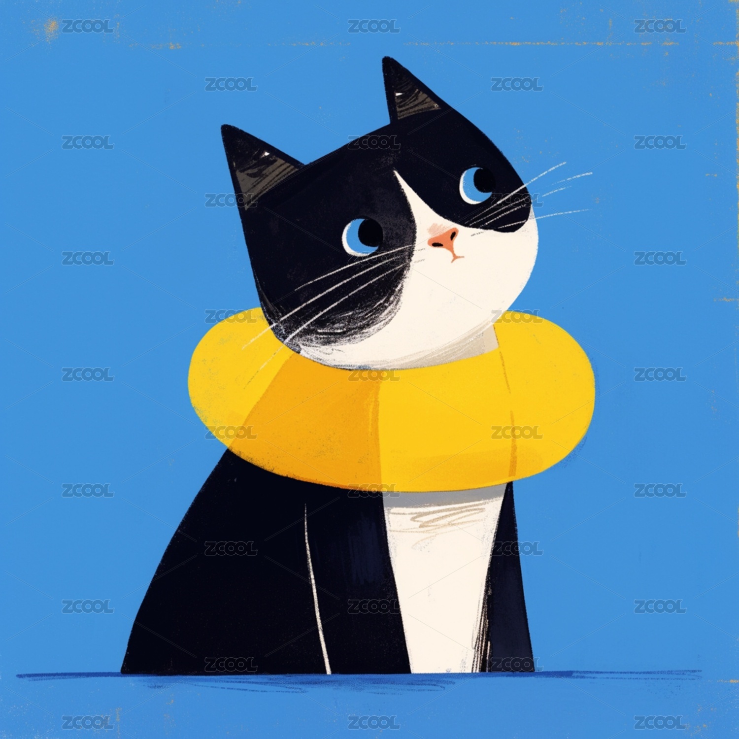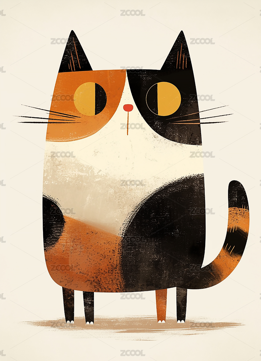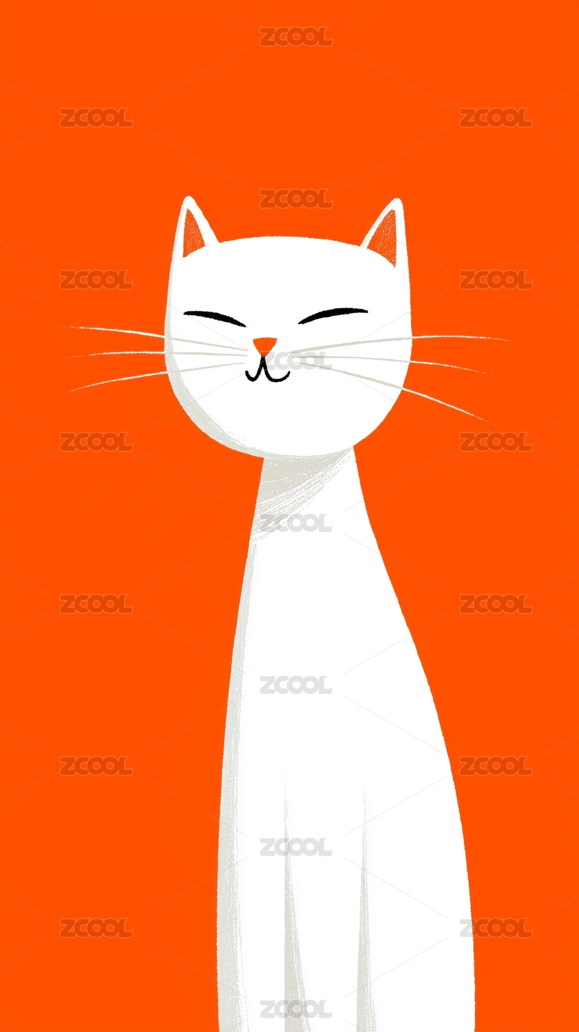 扁平小猫插画明亮一只可爱宠物猫绘画