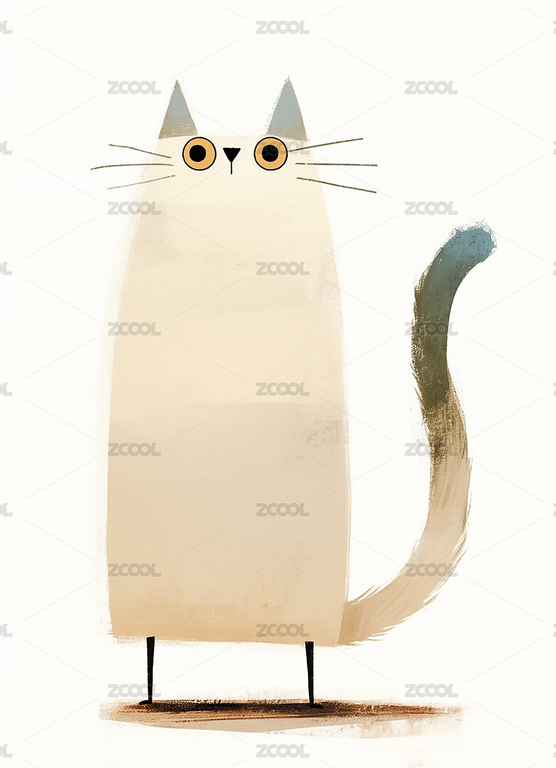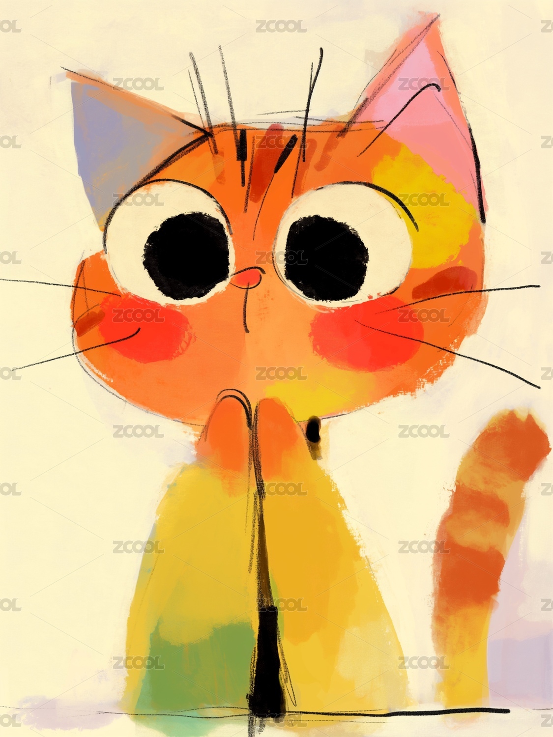 白背景,一只,宠物猫,插画,绘画,涂鸦,猫,蹲,尖耳朵,大眼睛