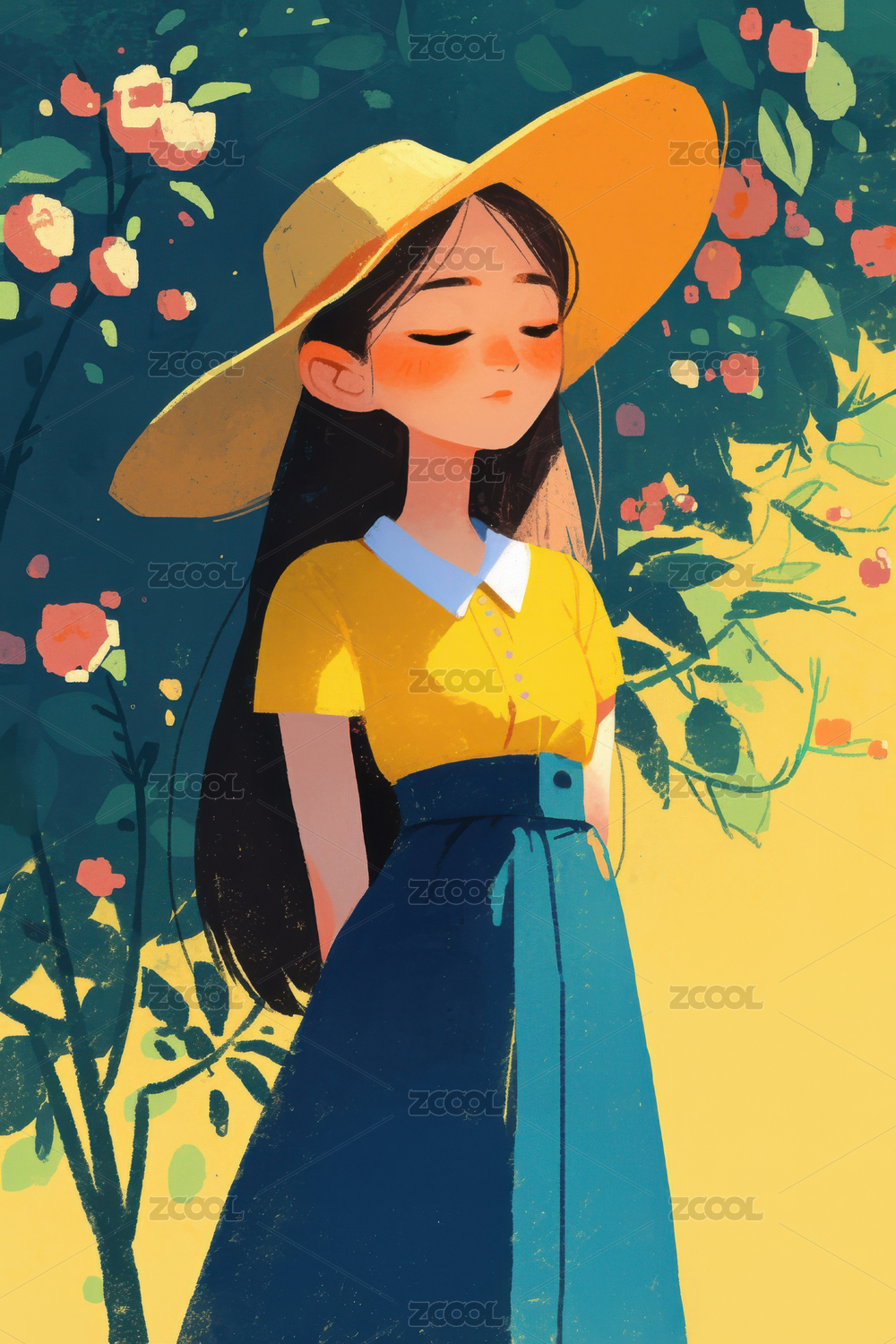 夏天女孩治愈系插画