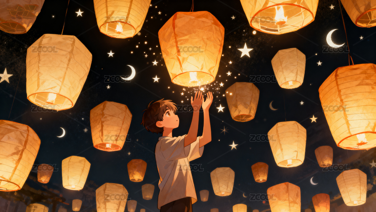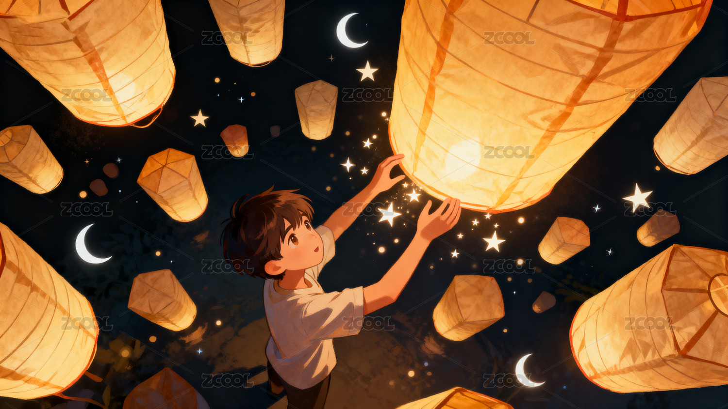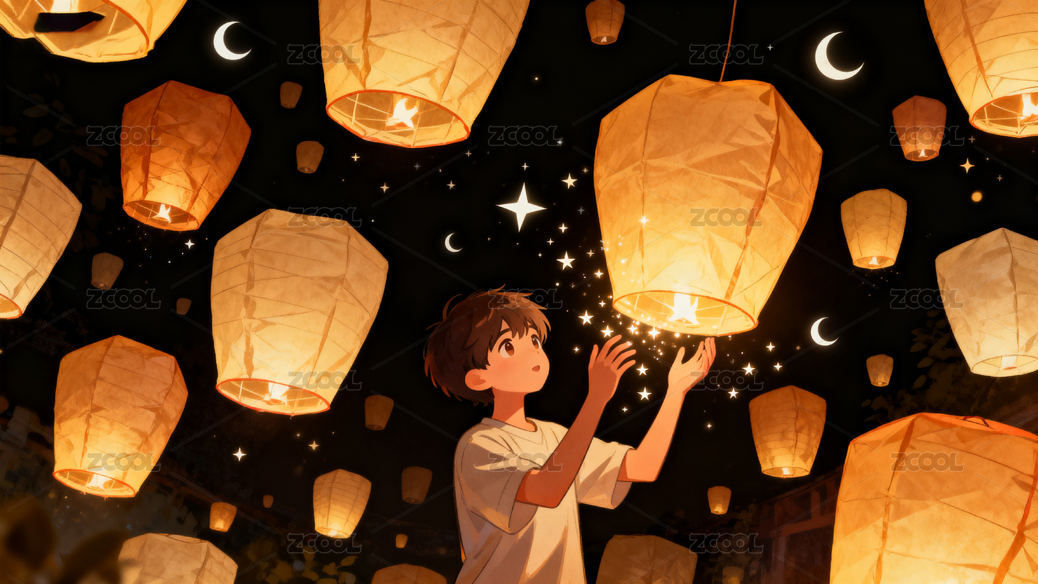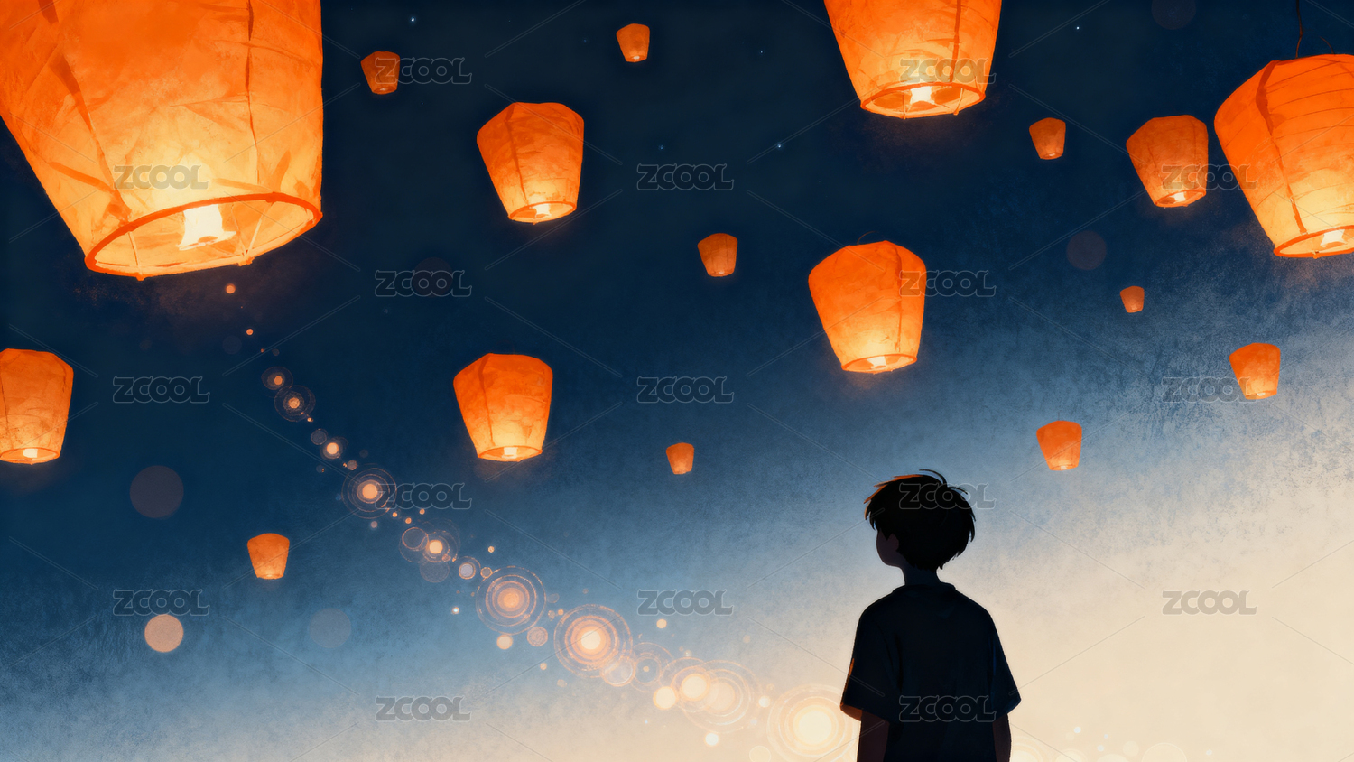 孔明灯,夜晚,中秋节,漂浮,飞升,天空,女孩,夜景,衣服,放飞