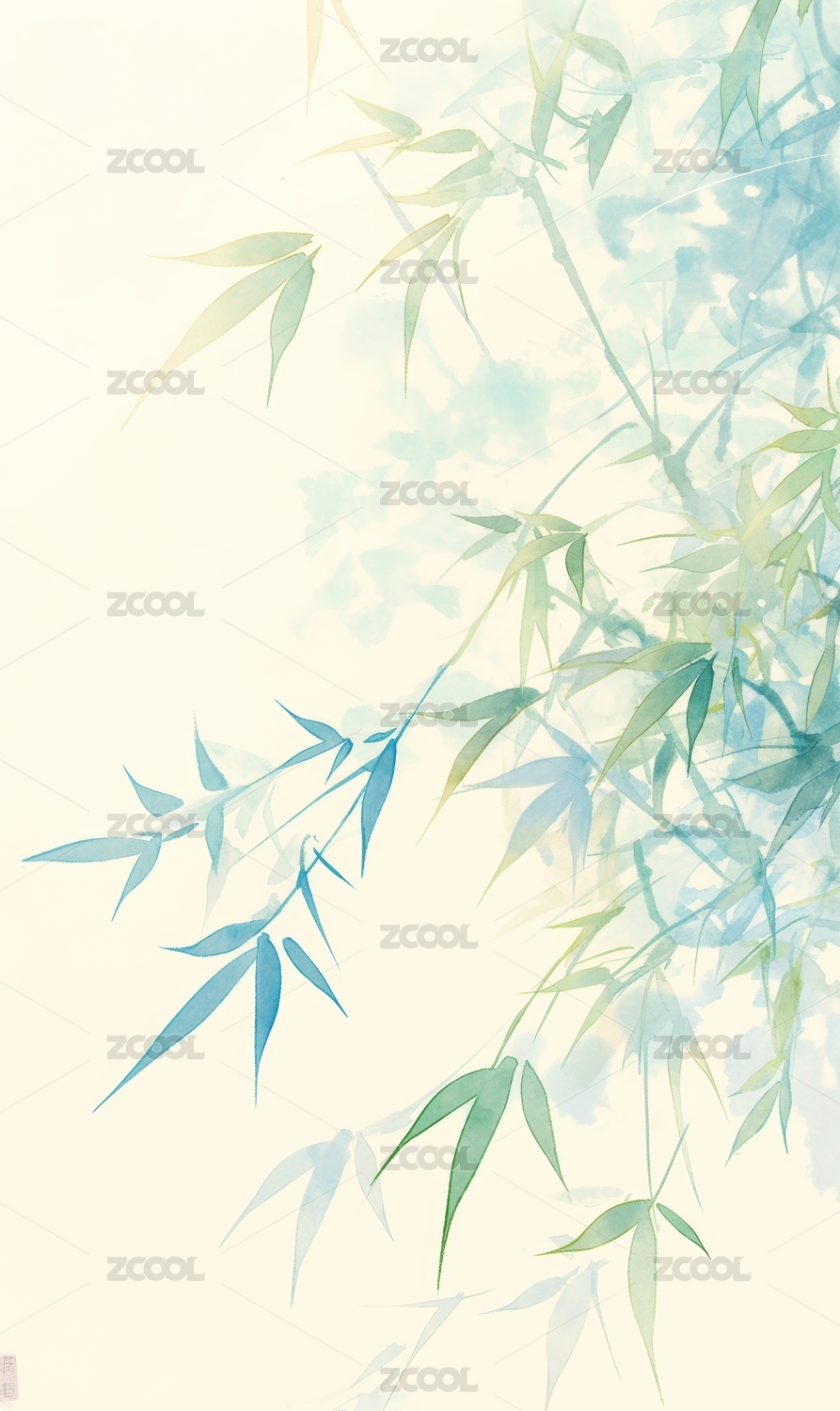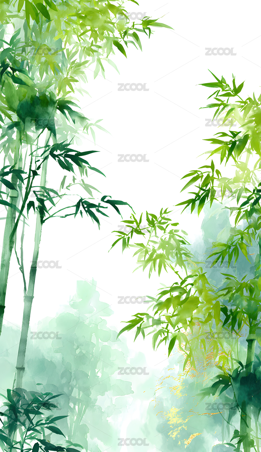 竹林,中国风,水彩画,水墨风,古风,绿色,抽象,艺术,背景,素雅