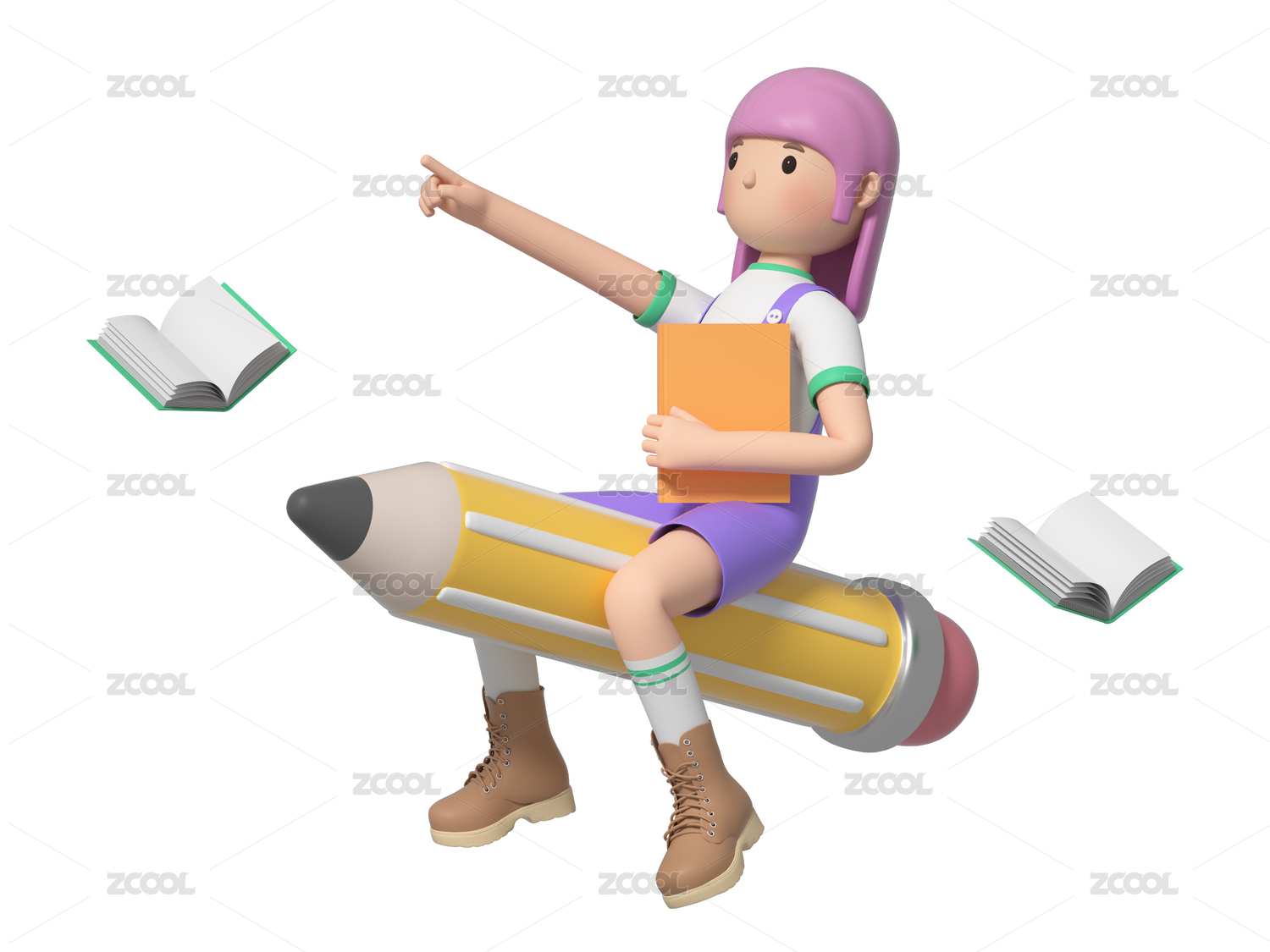 3D,三维,立体,学生,少女,补习班,课外班,学习,女孩,小学生
