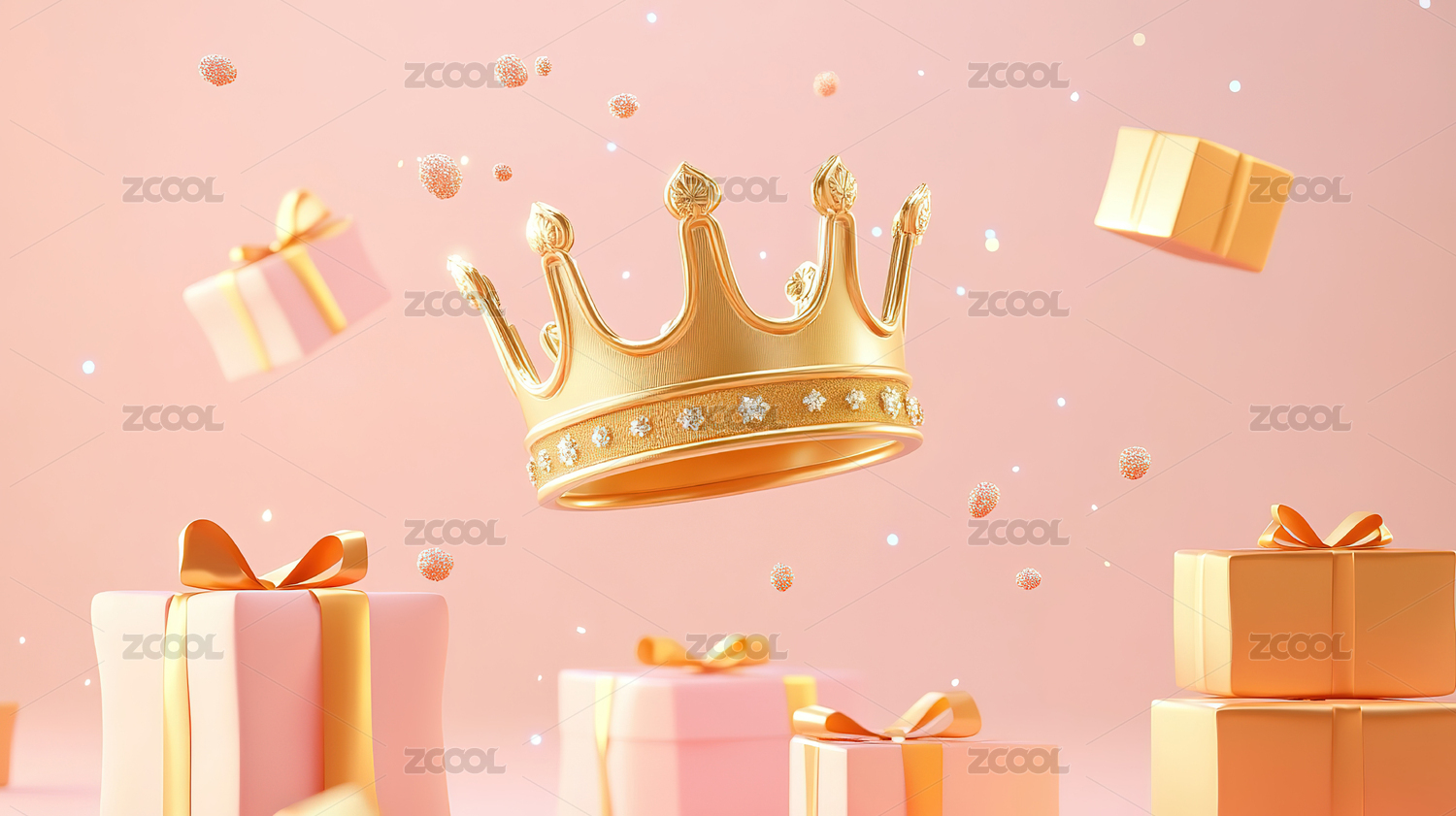 金色,立体,3D,三维,粉色,爱心,礼盒,雅致,立体场景,场景