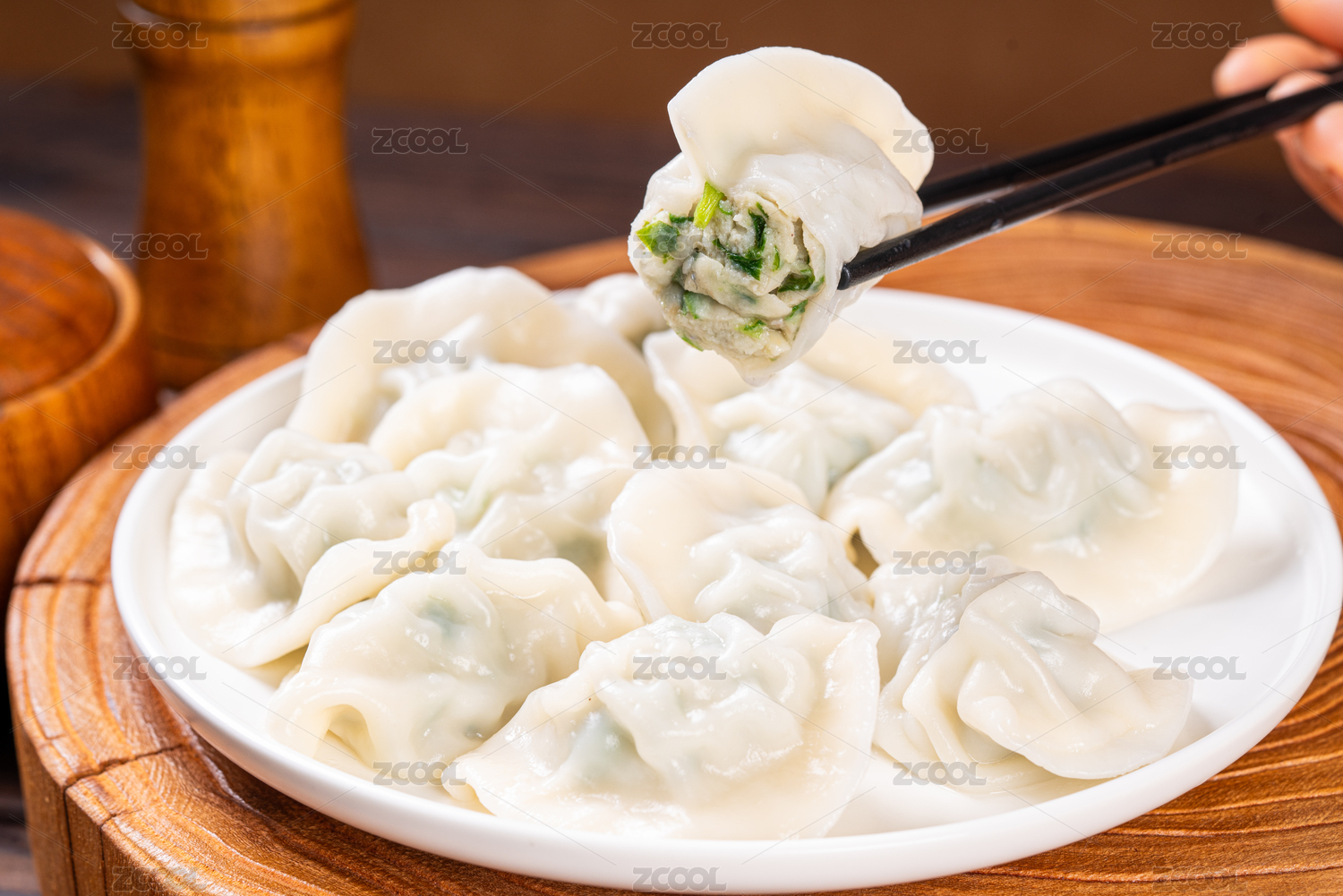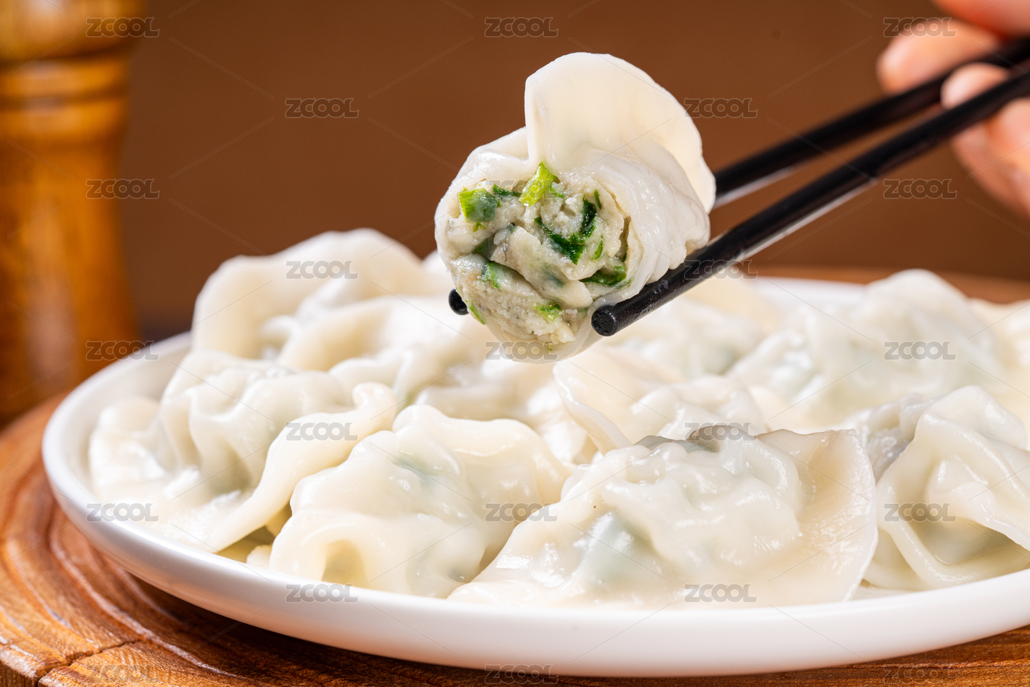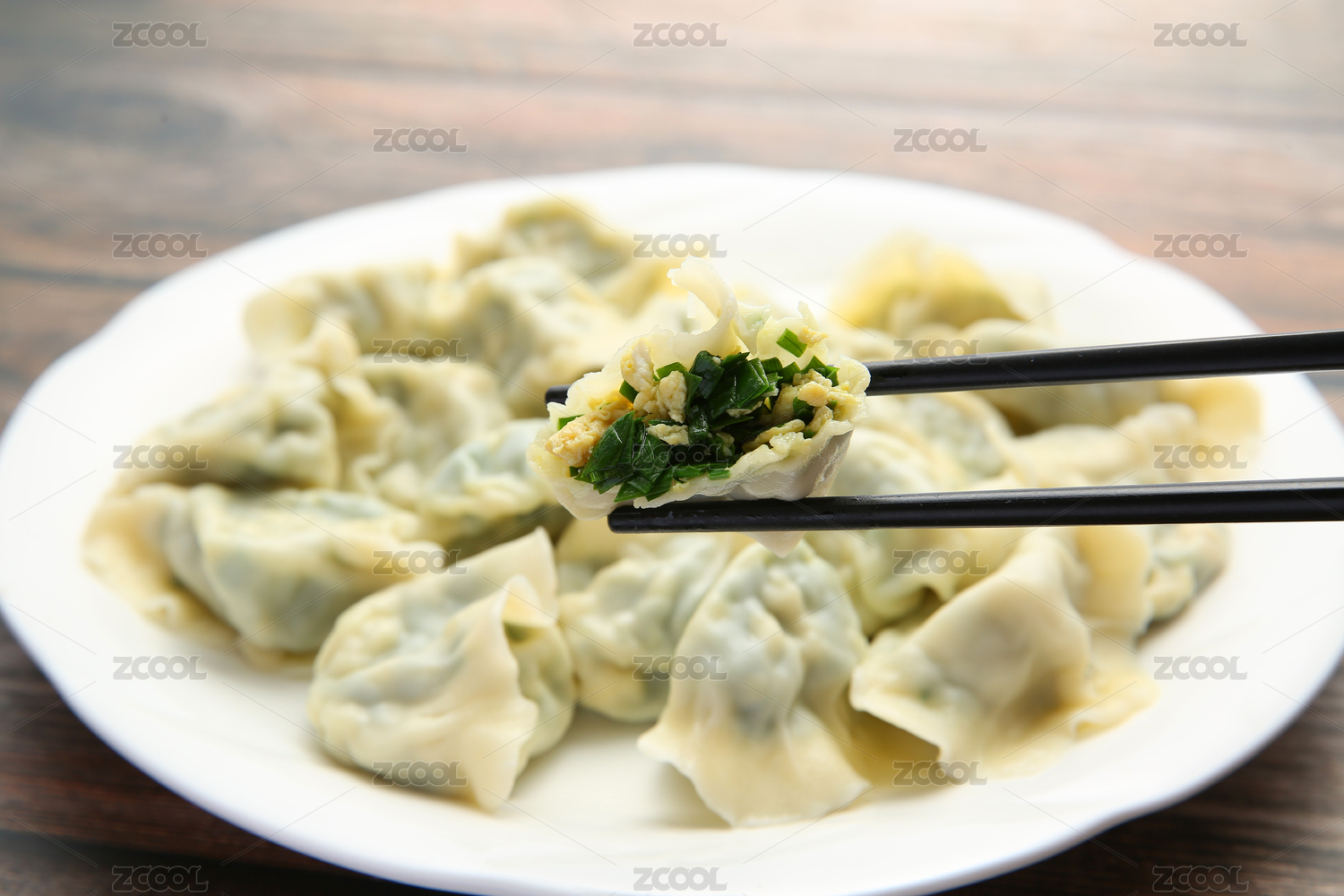 筷子夹起饺子水饺特写