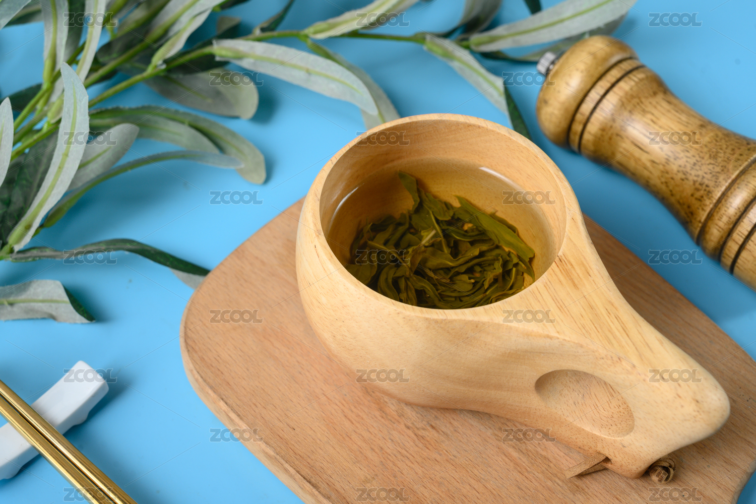 桌面上的杯子里的甘甜可口的绞股蓝茶