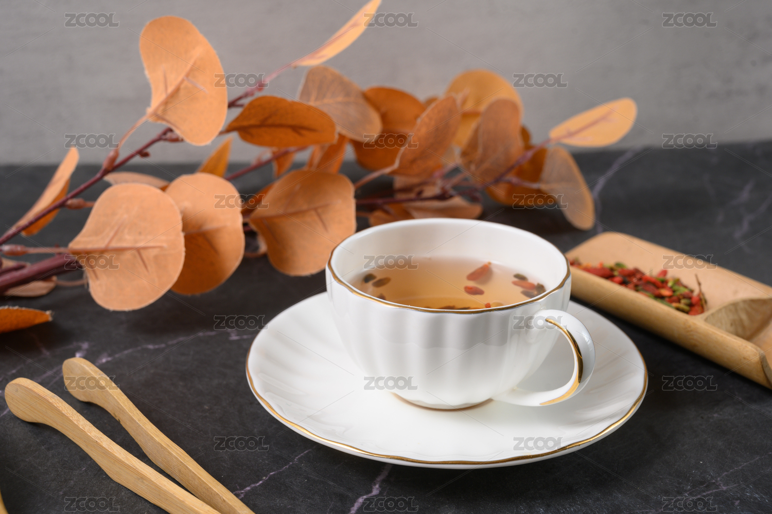 桌面上个的杯子里的甘甜可口的龙胆草茶