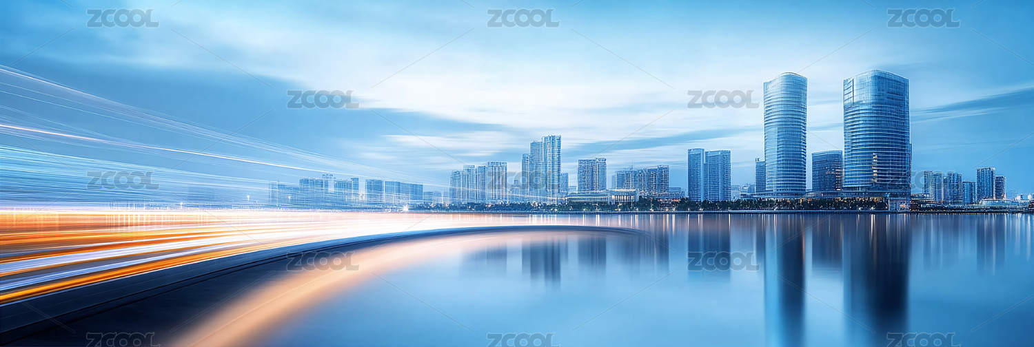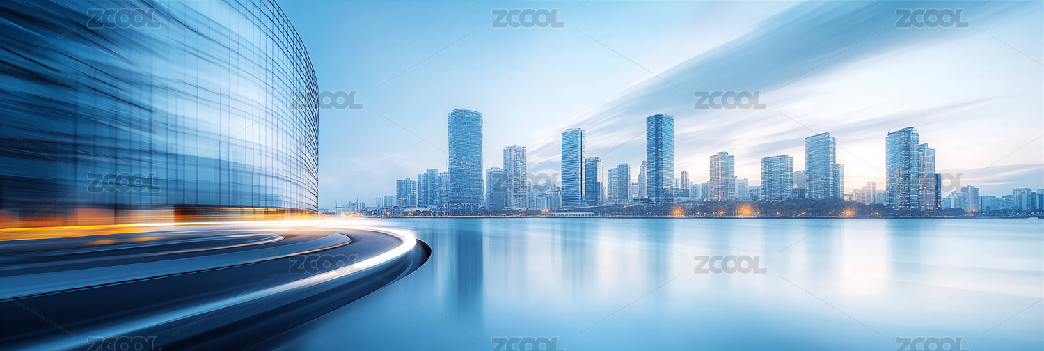 城市建筑天际线湖面倒影